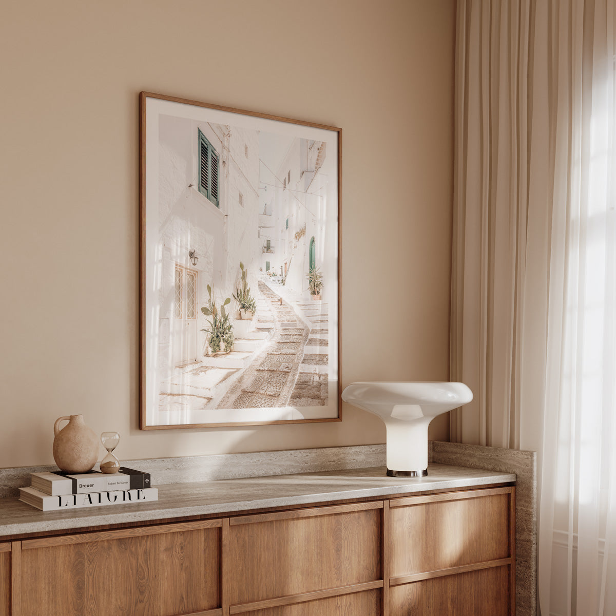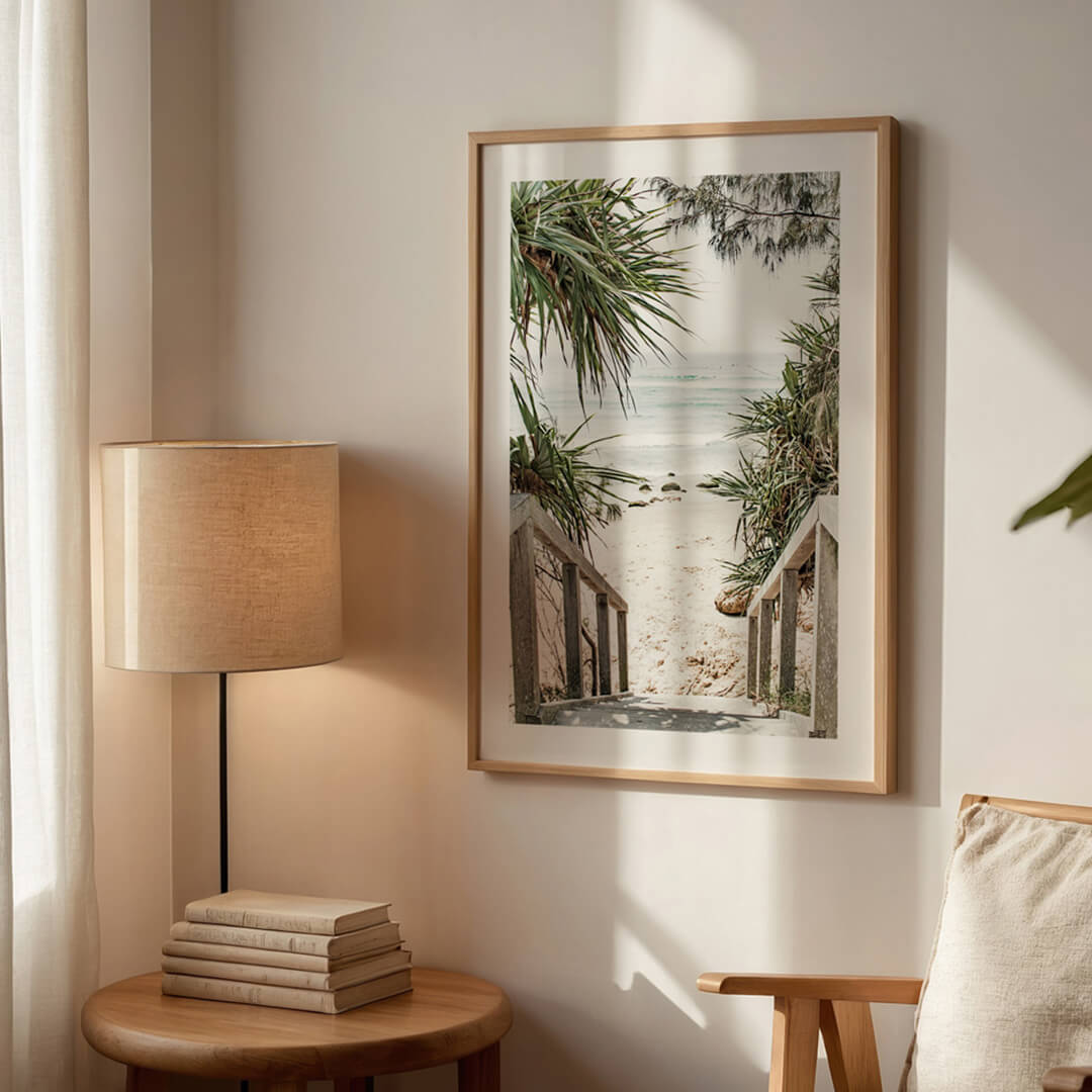 Our collection spans coastal scenes, abstract art, floral compositions, Australiana, Hamptons-inspired interiors, nursery artwork, fashion imagery and European travel photography from Italy, Greece and beyond. Each piece is thoughtfully selected to complement modern Australian homes, helping you create a space that feels considered, balanced and timeless.