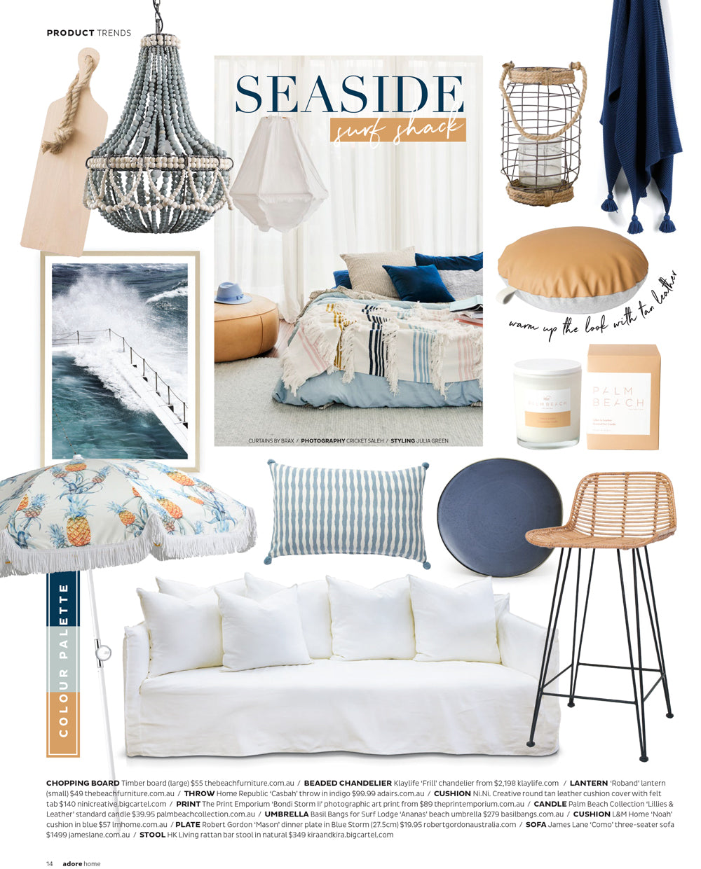 Adore Home Magazine Featuring our Bondi Storm I Photo Art Print, both with Oak Frame