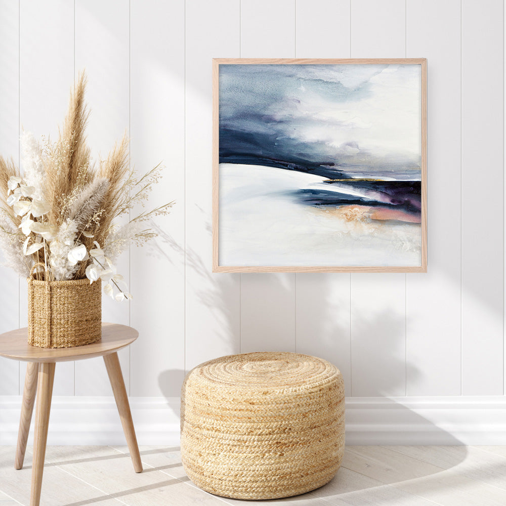 Our art prints are custom printed on quality 230gsm white matte paper. We offer a wide range of sizes. Choose from an unframed print or a framed, ready-to-hang option.