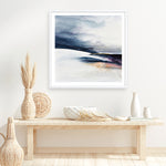 Shop A Place To Be (Square) Art Print by Karen Hale and update your wall decor at home easily with this cloudy beach view square artwork from our hand painted print collection.