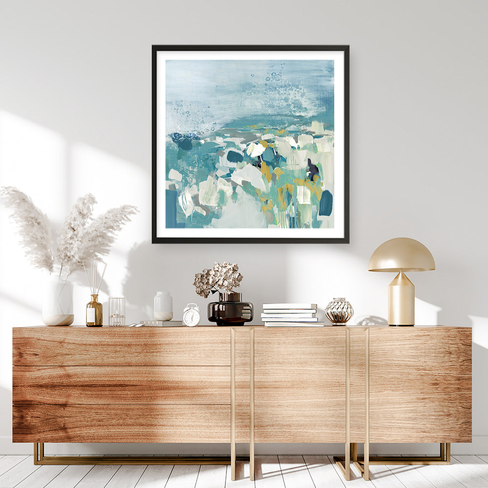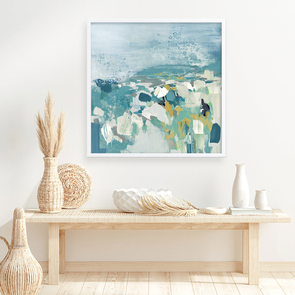 Shop Above The Sea (Square) Wall Art Print by The Print Emporium and update your wall decor at home easily with this aqua blue-toned abstract themed wall artwork print from our hand painted prints collection.
