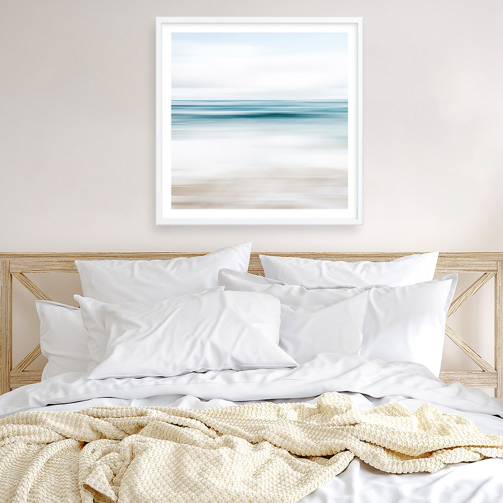 Shop Abstract Beach (Square) Art Print by Elena Chukhlebova and update your wall decor at home easily with this blue coastal abstract square artwork from our hand painted print collection.