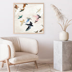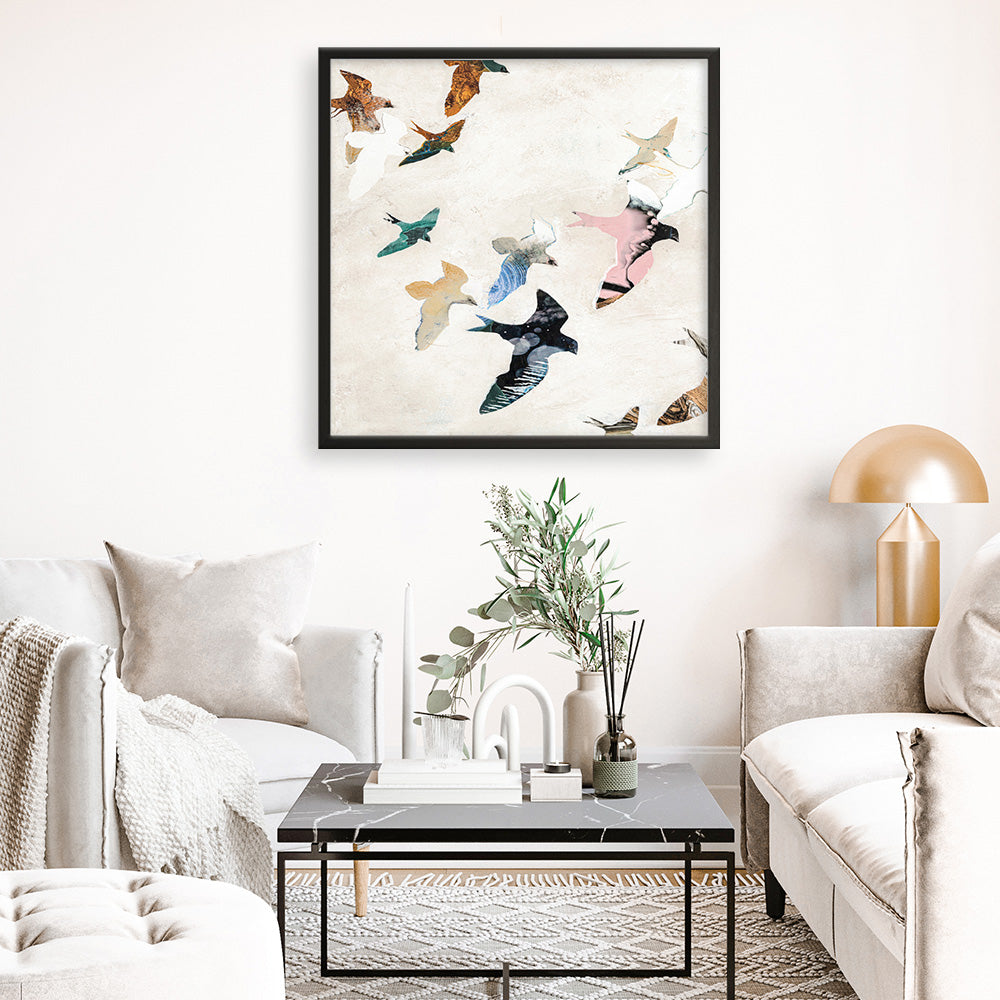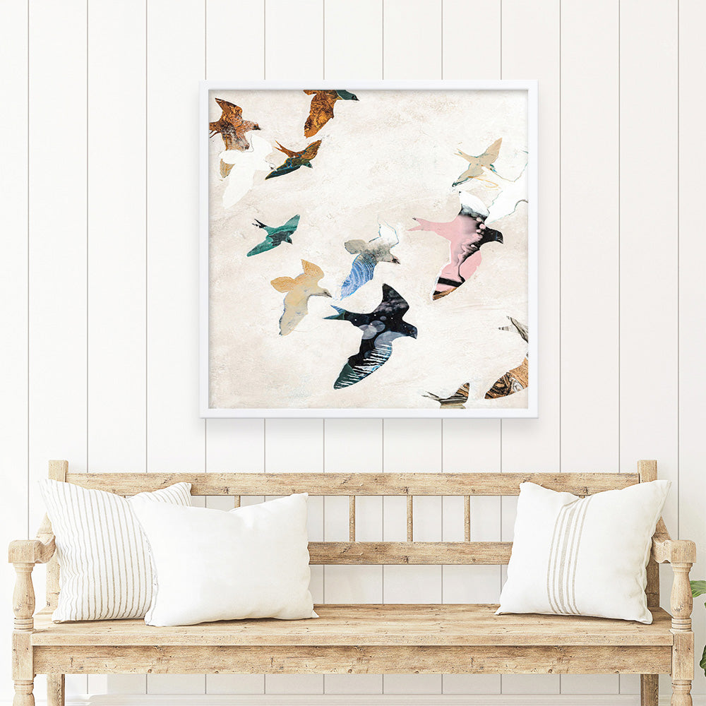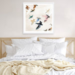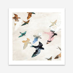 Shop Abstract Birds 2 (Square) Art Print by Design Fabrikken and update your wall decor at home easily with this colourful flock of birds square artwork from our hand painted print collection.