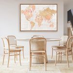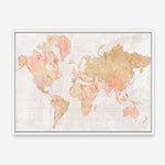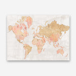 Shop Across the World Map Canvas Print by Sue Schlabach and update your wall decor at home easily with this peach coloured map of the world artwork from our abstract hand painted print collection .