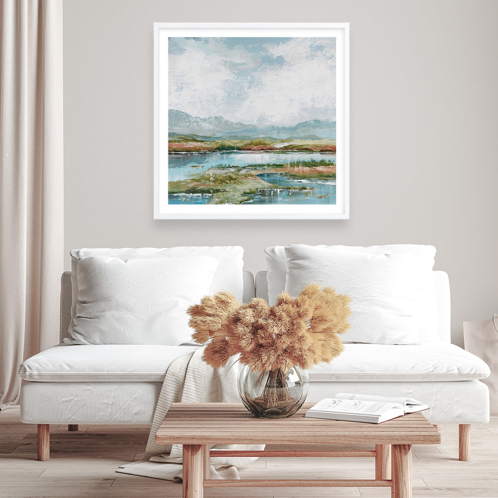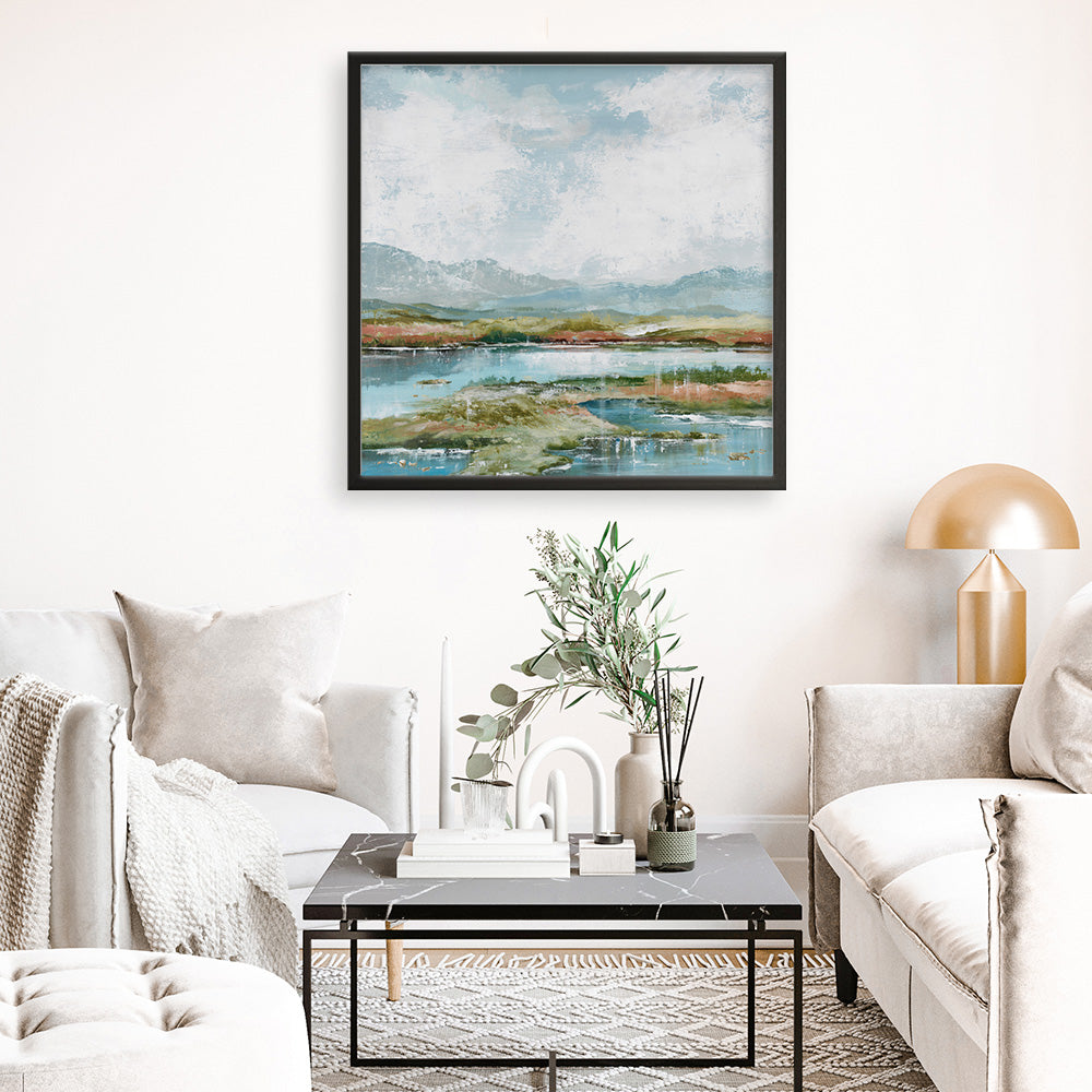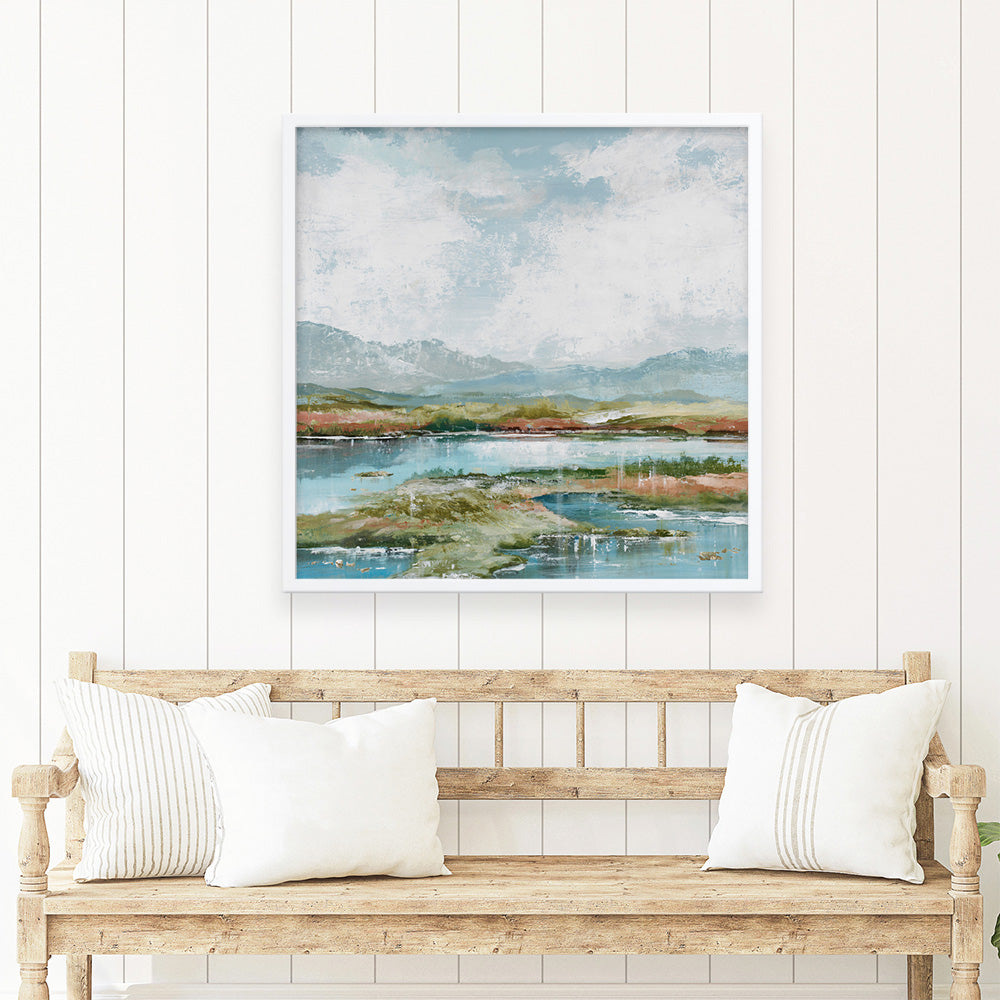 Shop Afternoon at The Lake 1 (Square) Art Print by Max Maxx and update your wall decor at home easily with this calm lake view square artwork from our hand painted print collection.