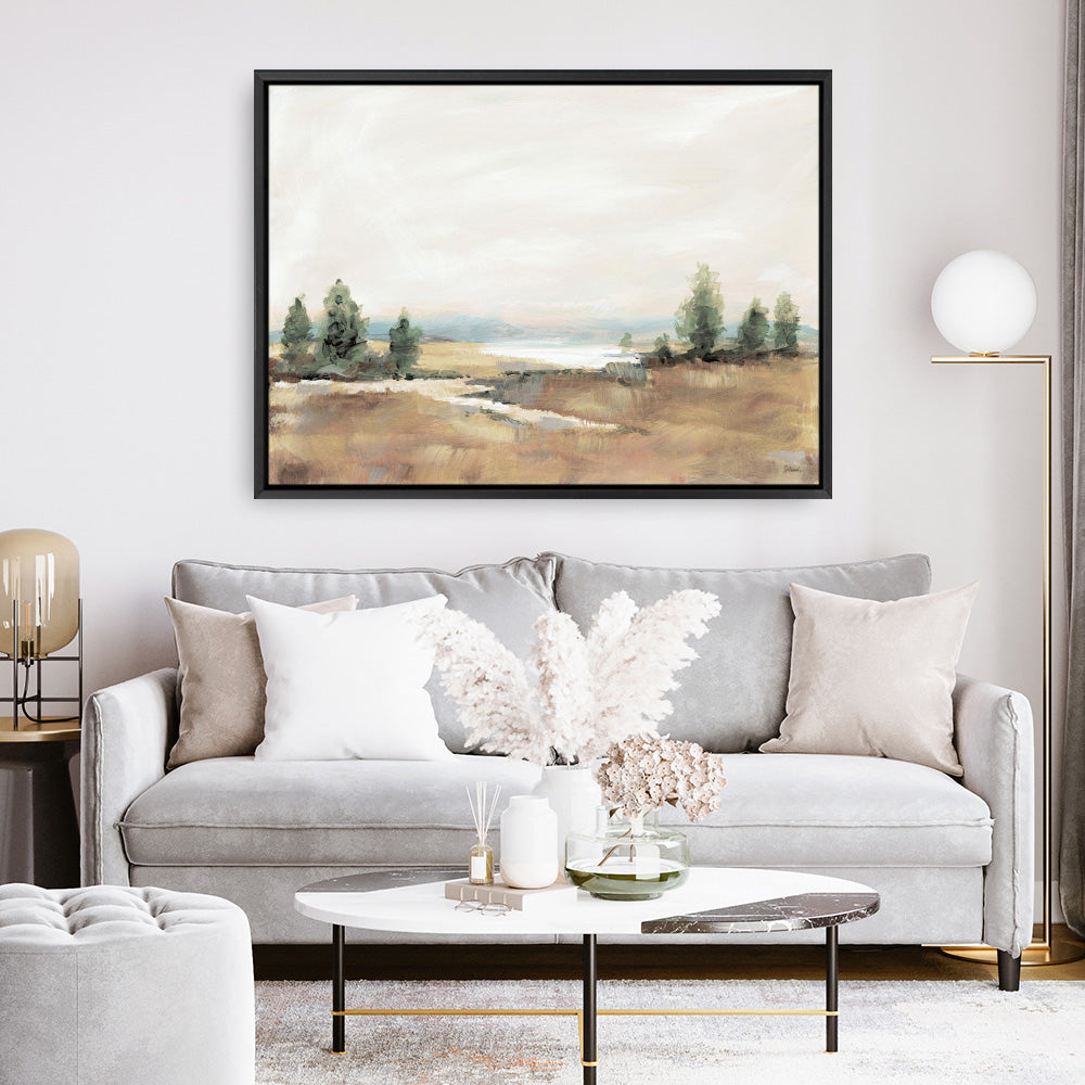 Shop Amity Pond Neutral Canvas Print by Sue Schlabach and update your wall decor at home easily with this contemporary painting of a field from our abstract hand painted print collection.