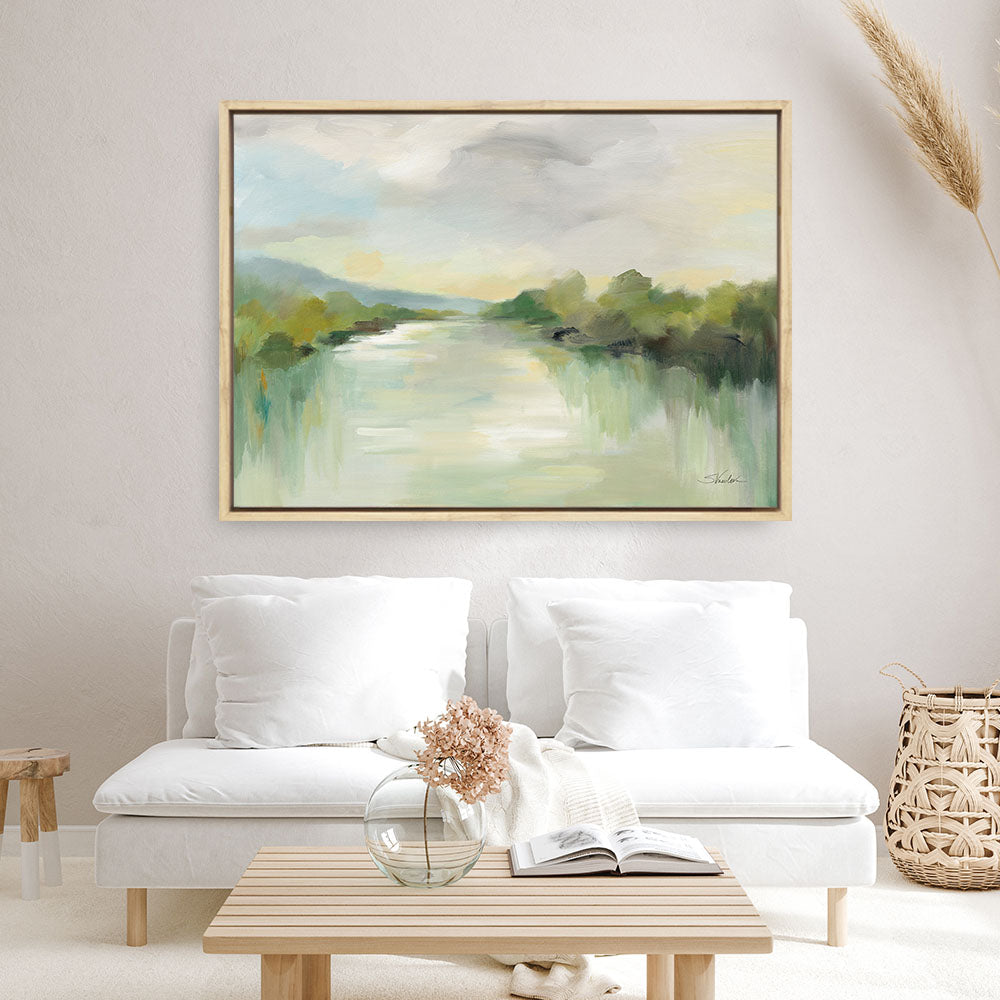 Shop April River Canvas Wall Art Print by Courtney Prahl and update your wall decor at home easily with this green-toned abstract landscape themed framed canvas artwork piece from our hand painted prints collection.