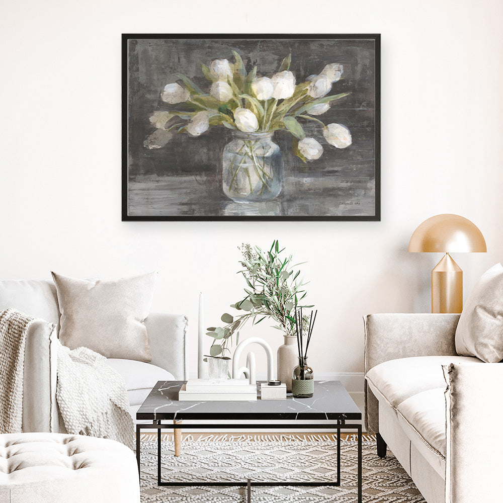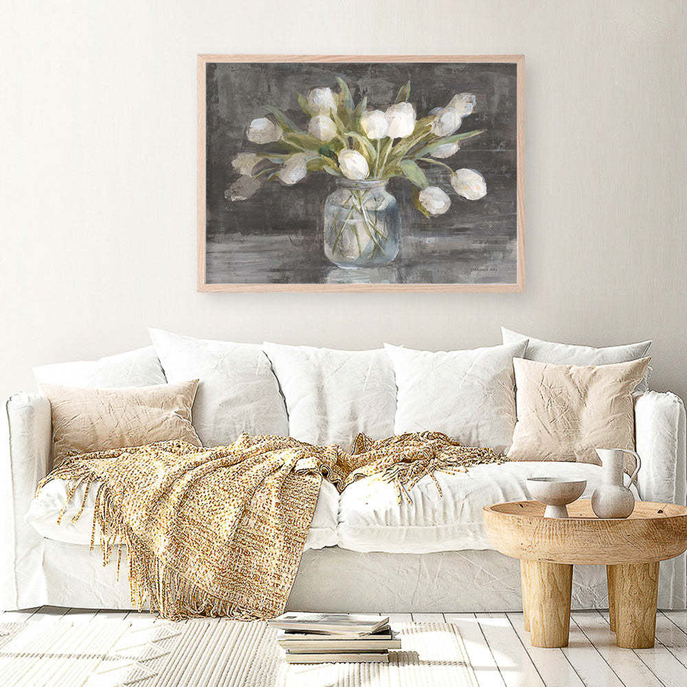 Shop April Tulips Art Print by Danhui Nai and update your wall decor at home easily with this vase of tulips artwork from our abstract hand painted print collection.