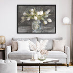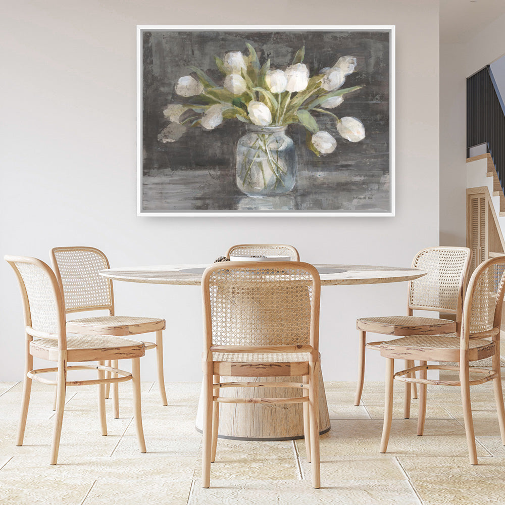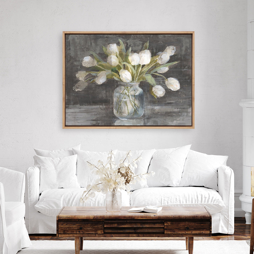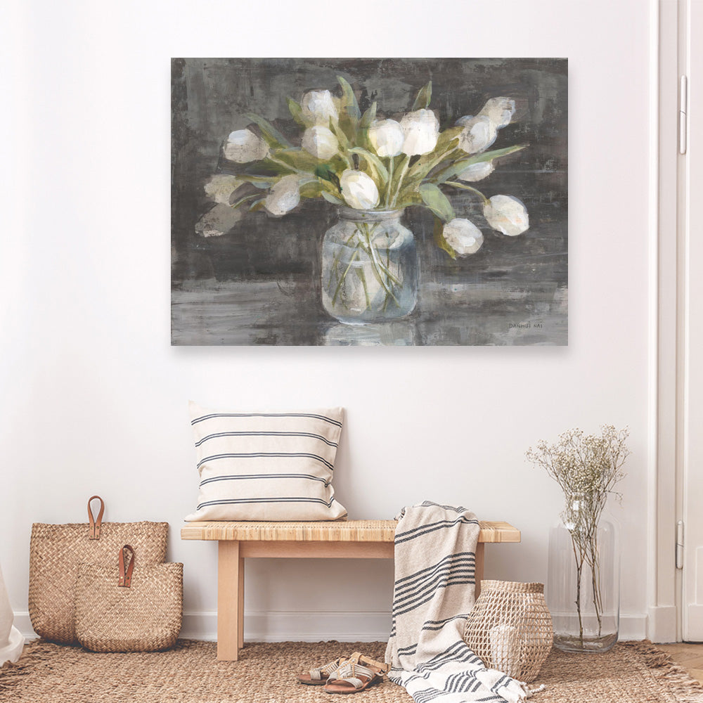Shop April Tulips Canvas Print by Danhui Nai and update your wall decor at home easily with this vase of tulips artwork from our abstract hand painted print collection .