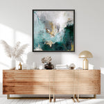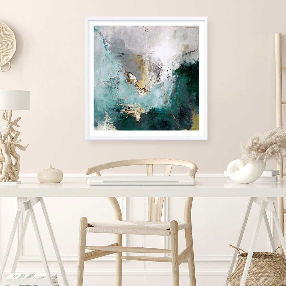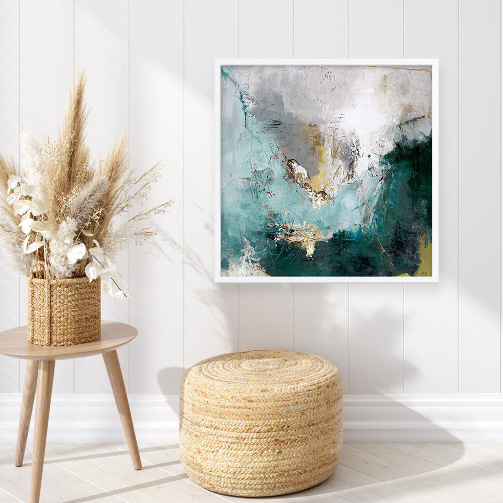 Shop Arctic Green Variation (Square) Art Print by Design Fabrikken and update your wall decor at home easily with this abstract splash of white and green square artwork from our hand painted print collection.