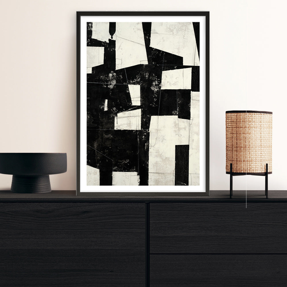 Shop Arrangement I Art Print by Michael Lawrence and update your wall decor at home easily with this black and white toned abstract themed from our hand painted print collection.