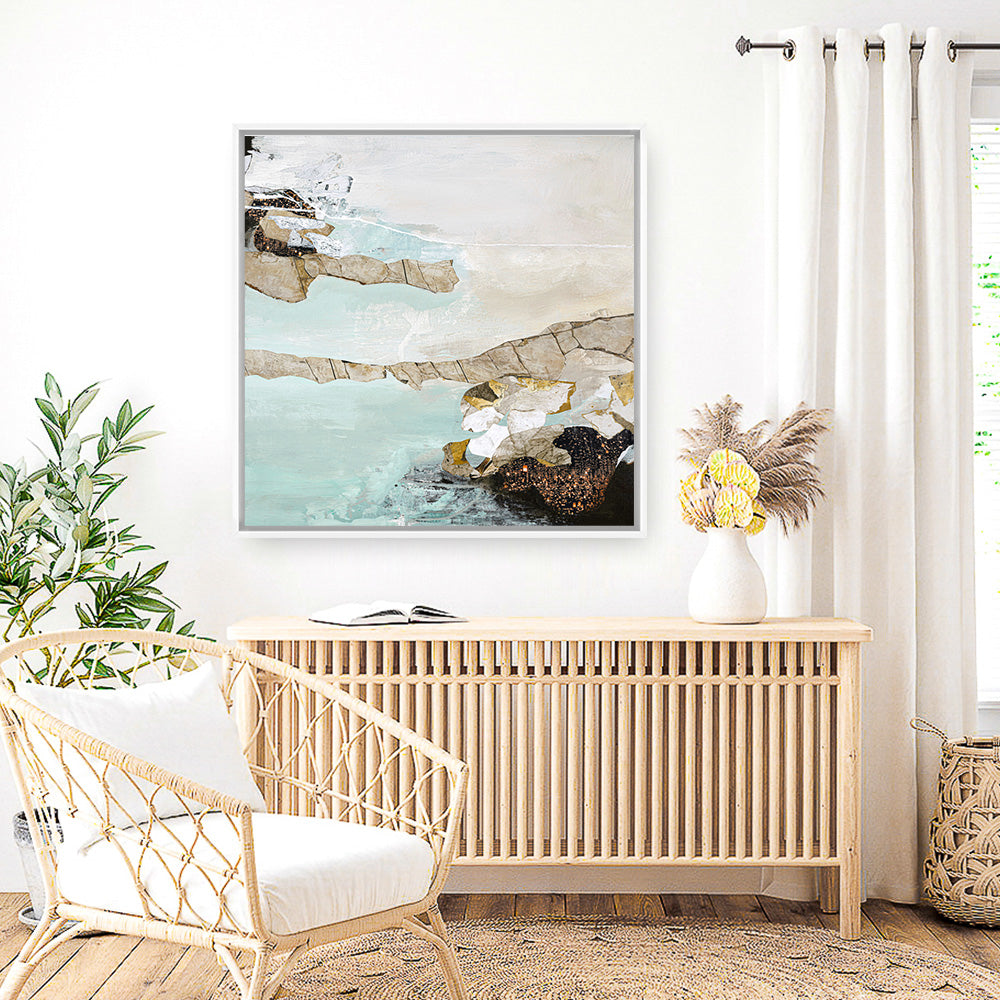 Shop Art Piece 1 (Square) Canvas Print by Design Fabrikken and update your wall decor at home easily with this abstract coastal square artwork from our hand painted canvas print collection.