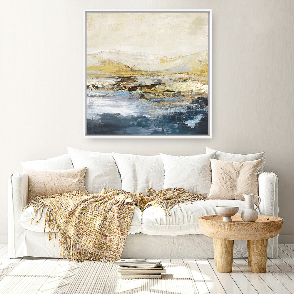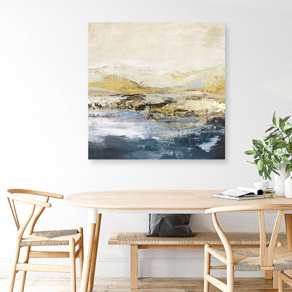 Shop Astonish 2 (Square) Canvas Print by Design Fabrikken and update your wall decor at home easily with this beautiful golden coastline square artwork from our hand painted canvas print collection.