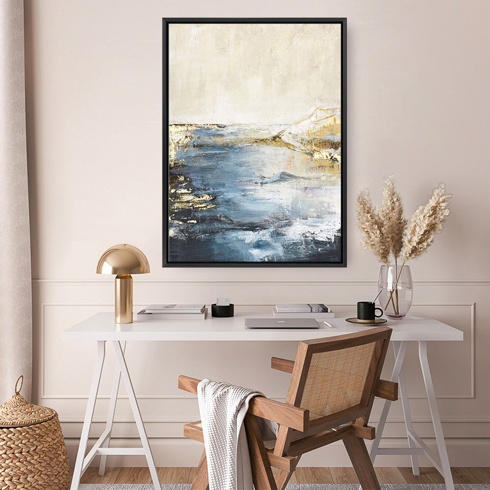 Shop Astonish 3 Canvas Print by Design Fabrikken and update your wall decor at home easily with this beautiful golden coastal artwork from our hand painted canvas print collection.