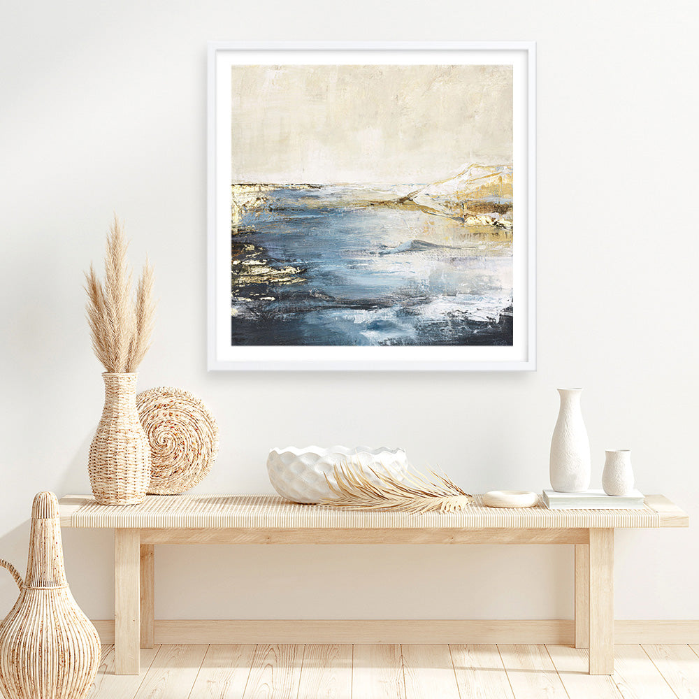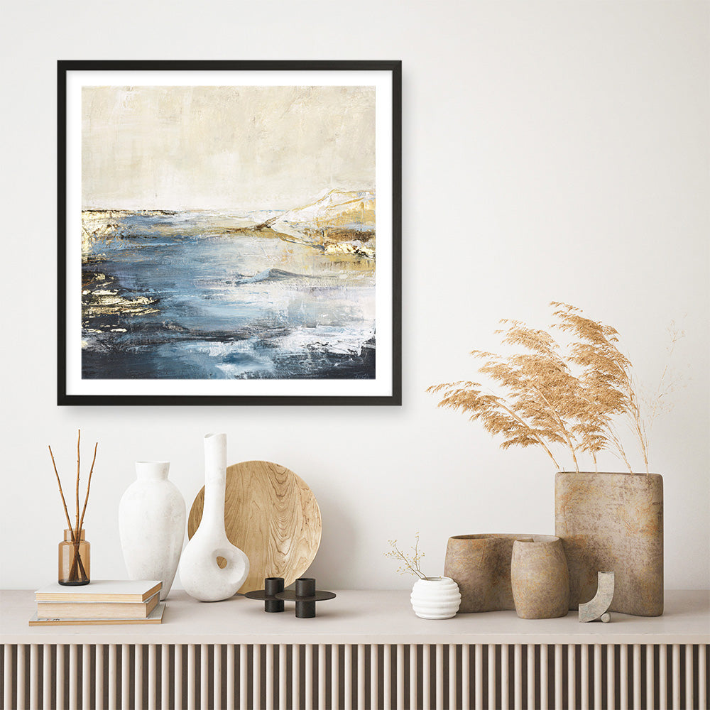 Shop Astonish 3 (Square) Art Print by Design Fabrikken and update your wall decor at home easily with this beautiful golden coastal square artwork from our hand painted print collection.