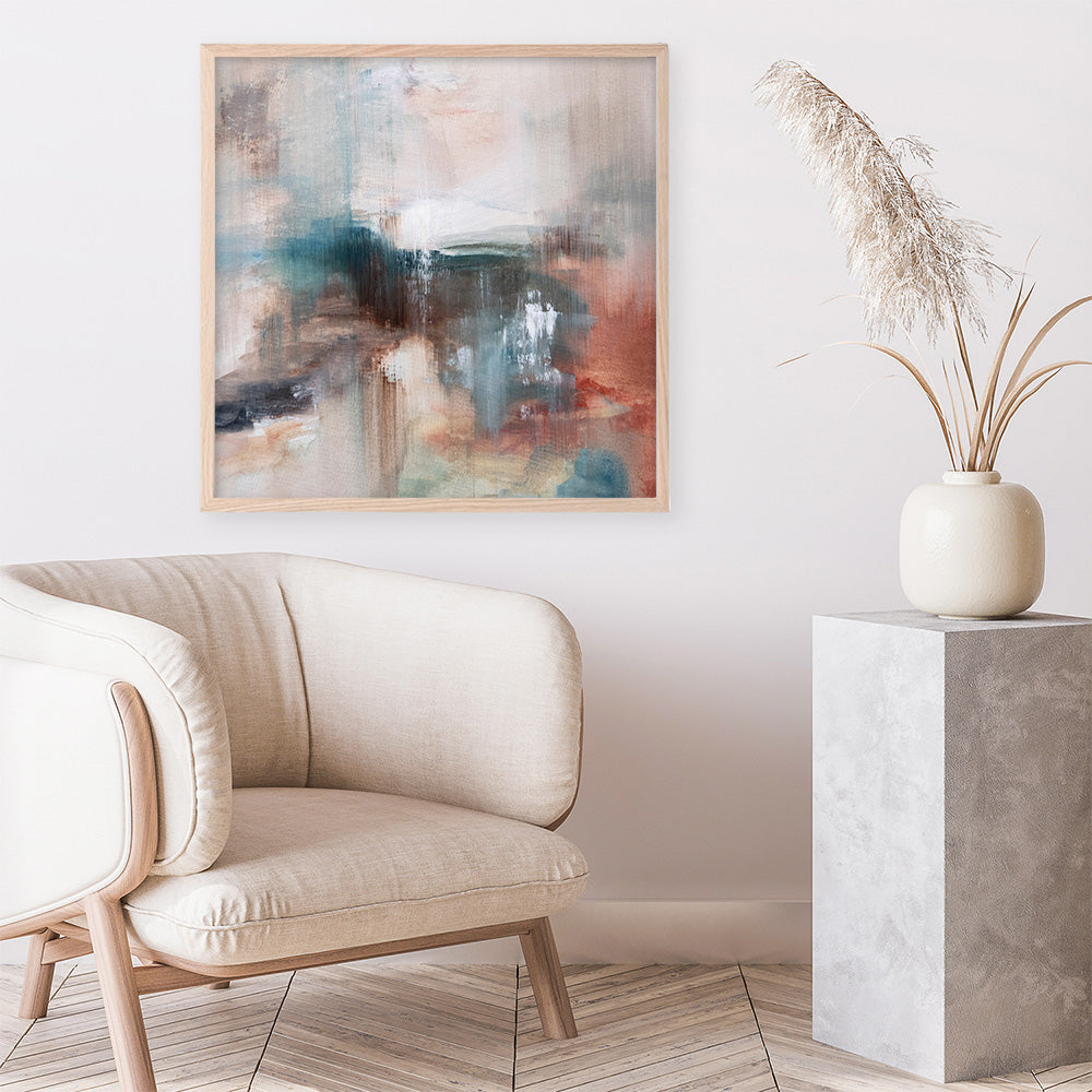 Shop Autumn River No. 1 (Square) Art Print by Hope Bainbridge and update your wall decor at home easily with this colourful abstract square artwork from our hand painted print collection.