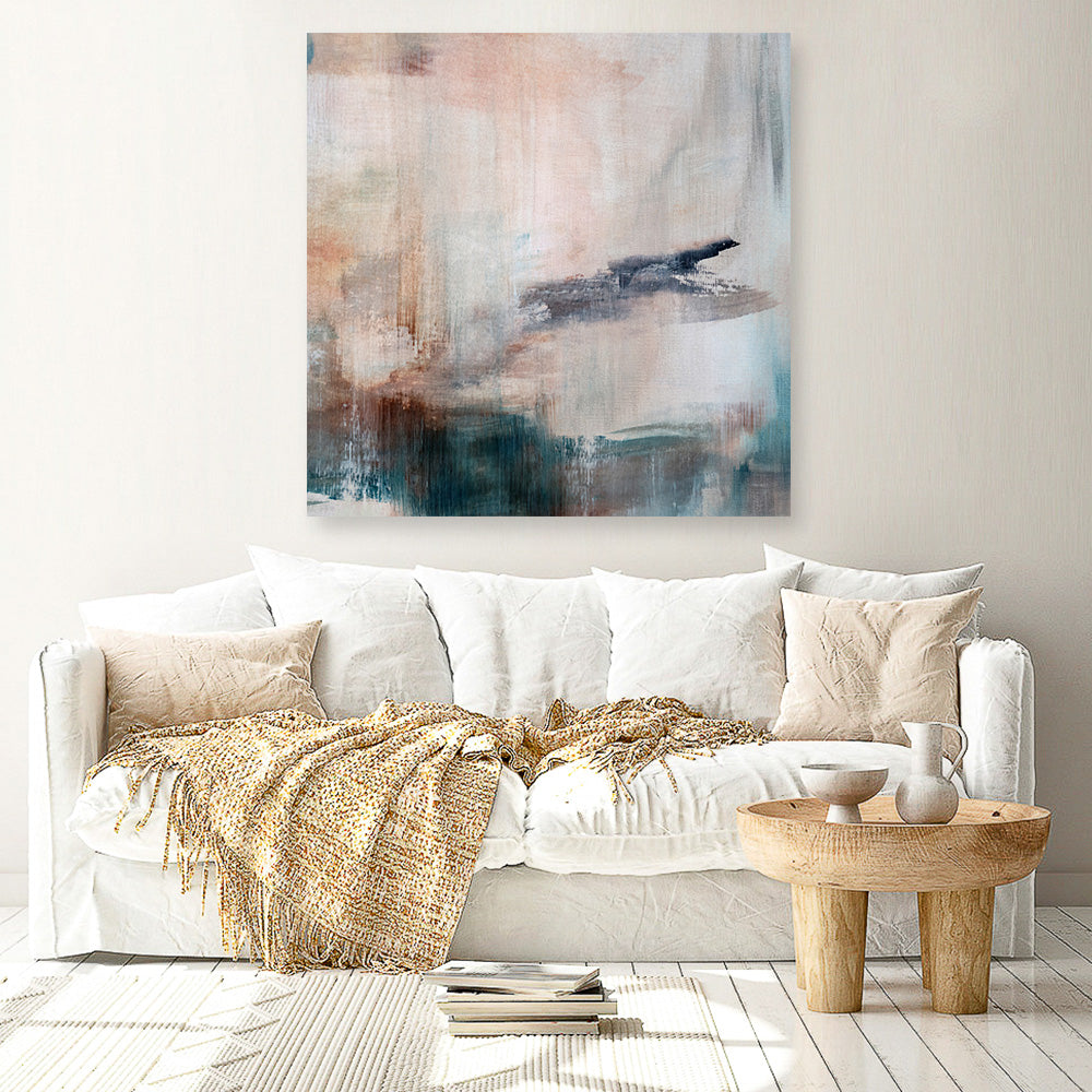 Hope Bainbridge is a Portland-based abstract artist, textile designer, and photographer known for her dreamy, flowing compositions. Inspired by nature, emotion, and seasonal changes, she works with soft blues, peaches, and earthy tones to create layered textures with a watercolor effect. Her gentle brushstrokes and organic forms bring a sense of calm and movement, making her work a soothing presence in any space. Bainbridge’s art bridges fine art and design, reflecting her passion for textiles and photography alongside painting. Her collections are celebrated internationally, admired by collectors and interior designers alike for their expressive elegance and timeless appeal.