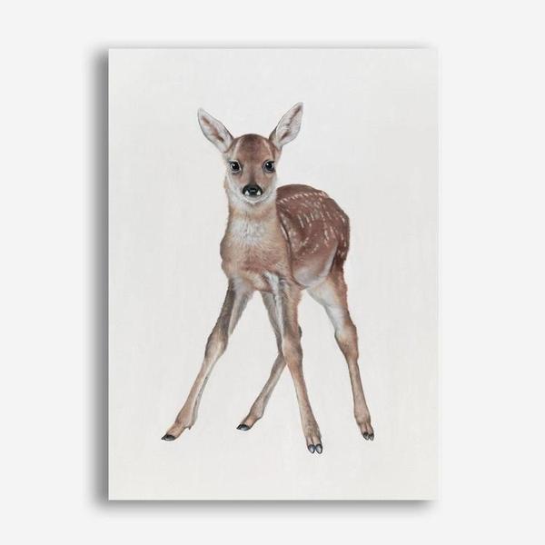 Shop Baby Deer Canvas Print by The Print Emporium. This canvas wall art print from our hand painted aesthetic print collection, was originally hand painted by us and is now available as a reproduction printed stretched and ready-to-hang canvas artwork.
