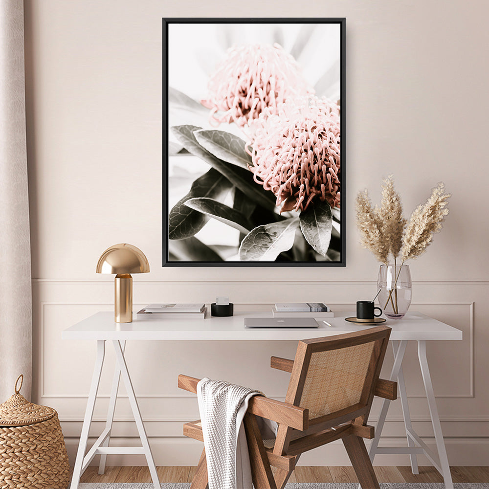 and update your wall decor at home easily with this pink Australian native botanical floral themed stretched ready-to-hang canvas wall art print from our collection.