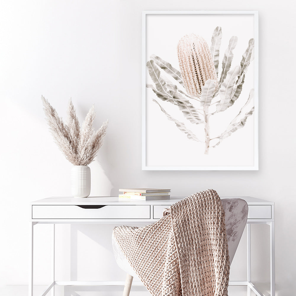 Shop Banksia III Photo Wall Art Print by The Print Emporium and update your wall decor at home easily with this pink Australian native flower artwork print from our floral photography collection.