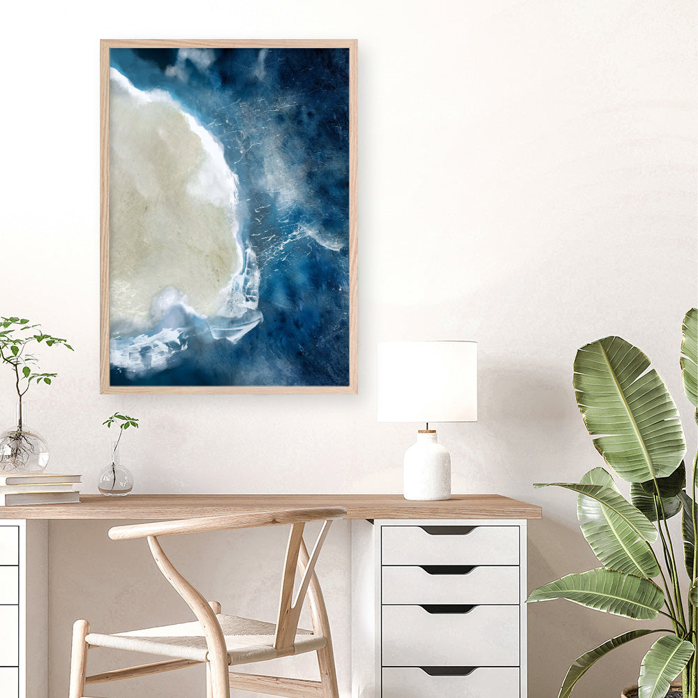 Shop Beach Art Print and update your wall decor at home easily with this blue, coastal themed artwork print from our hand painted print collection by United Kingdom based artist Dan Hobday, now available on The Print Emporium. Dan creates artwork using a mixture of mediums including acrylic paints, inks, digital and also mixed media. All original artworks were designed and hand created by Dan and then digitised, and now available to purchase as reprints on paper or canvas and with framing options available.