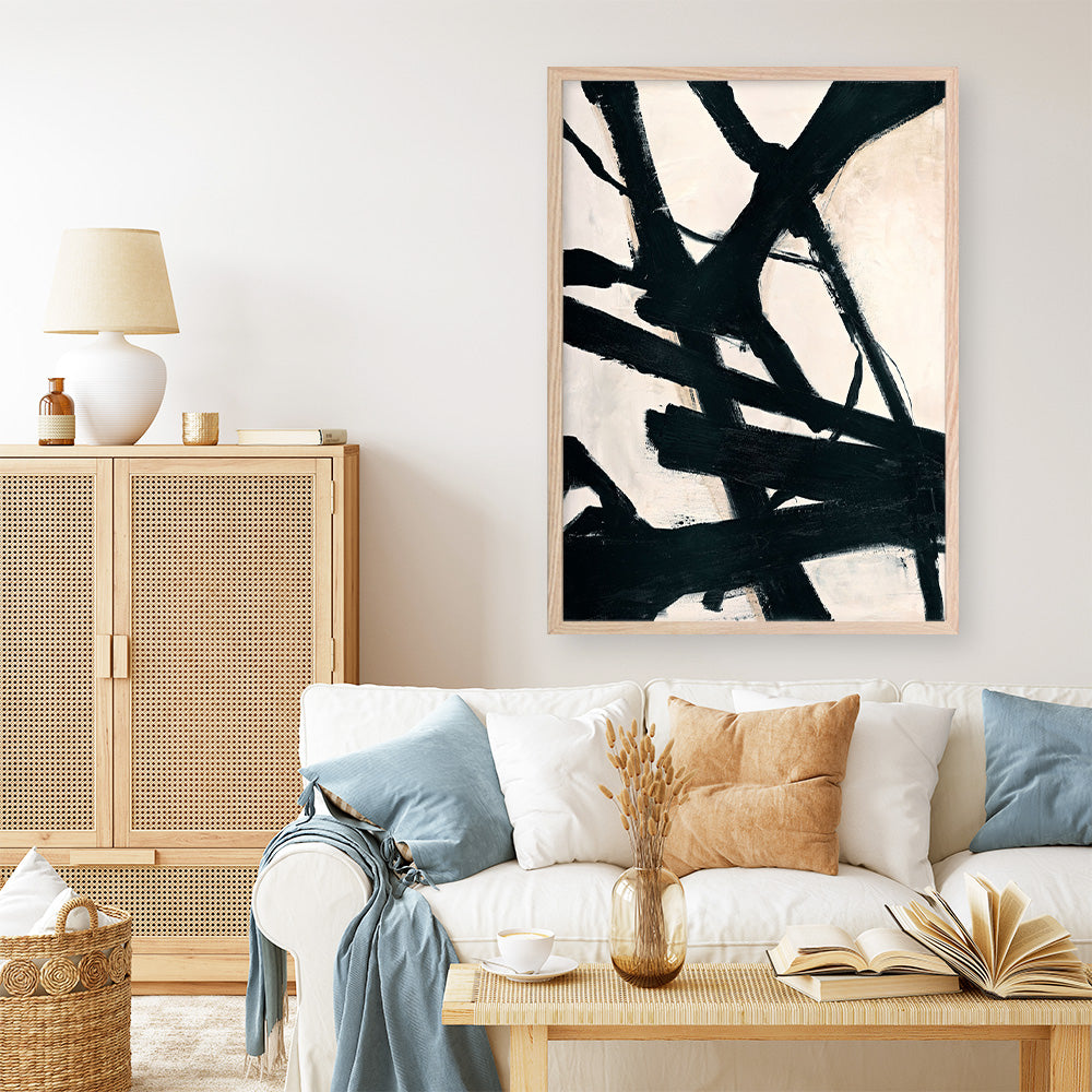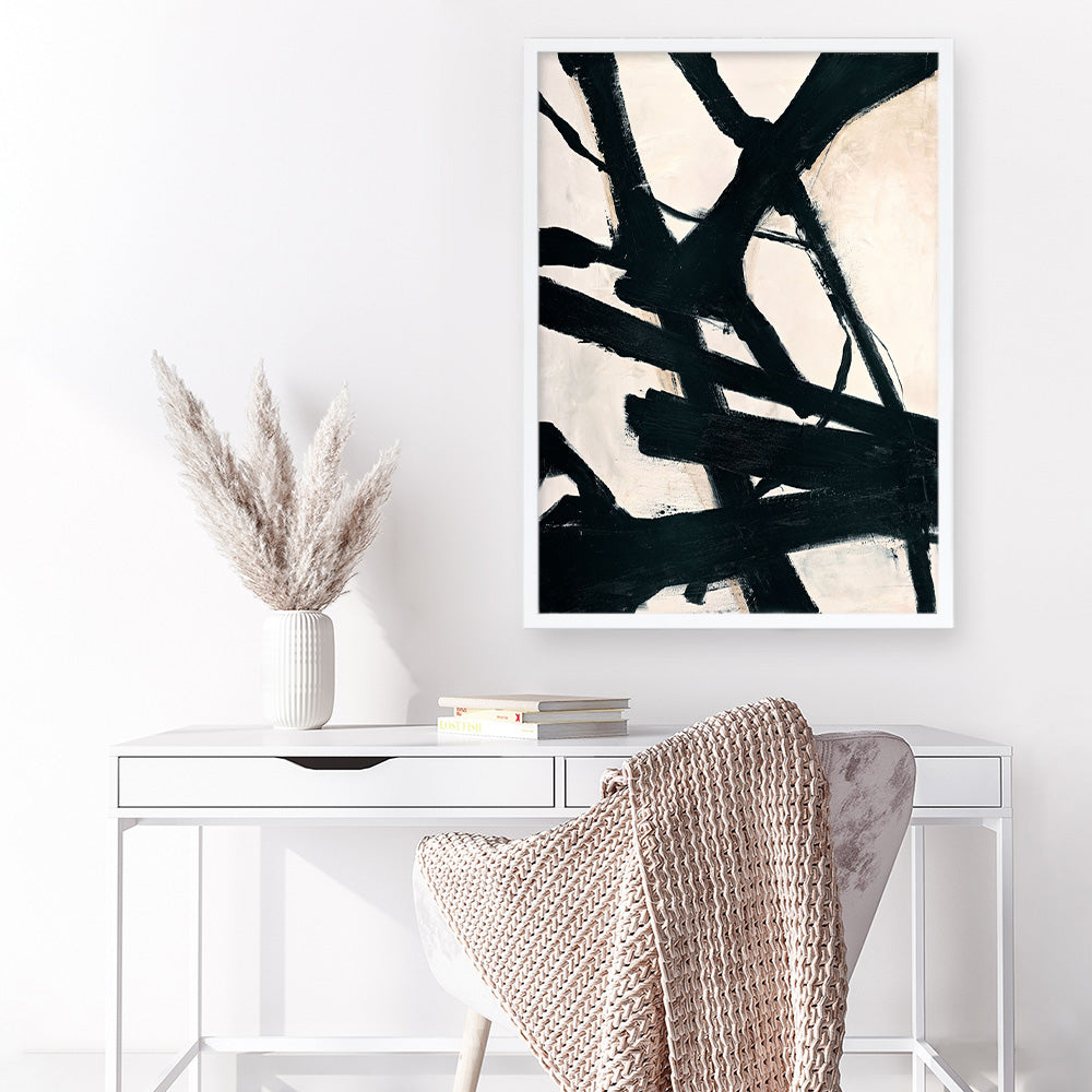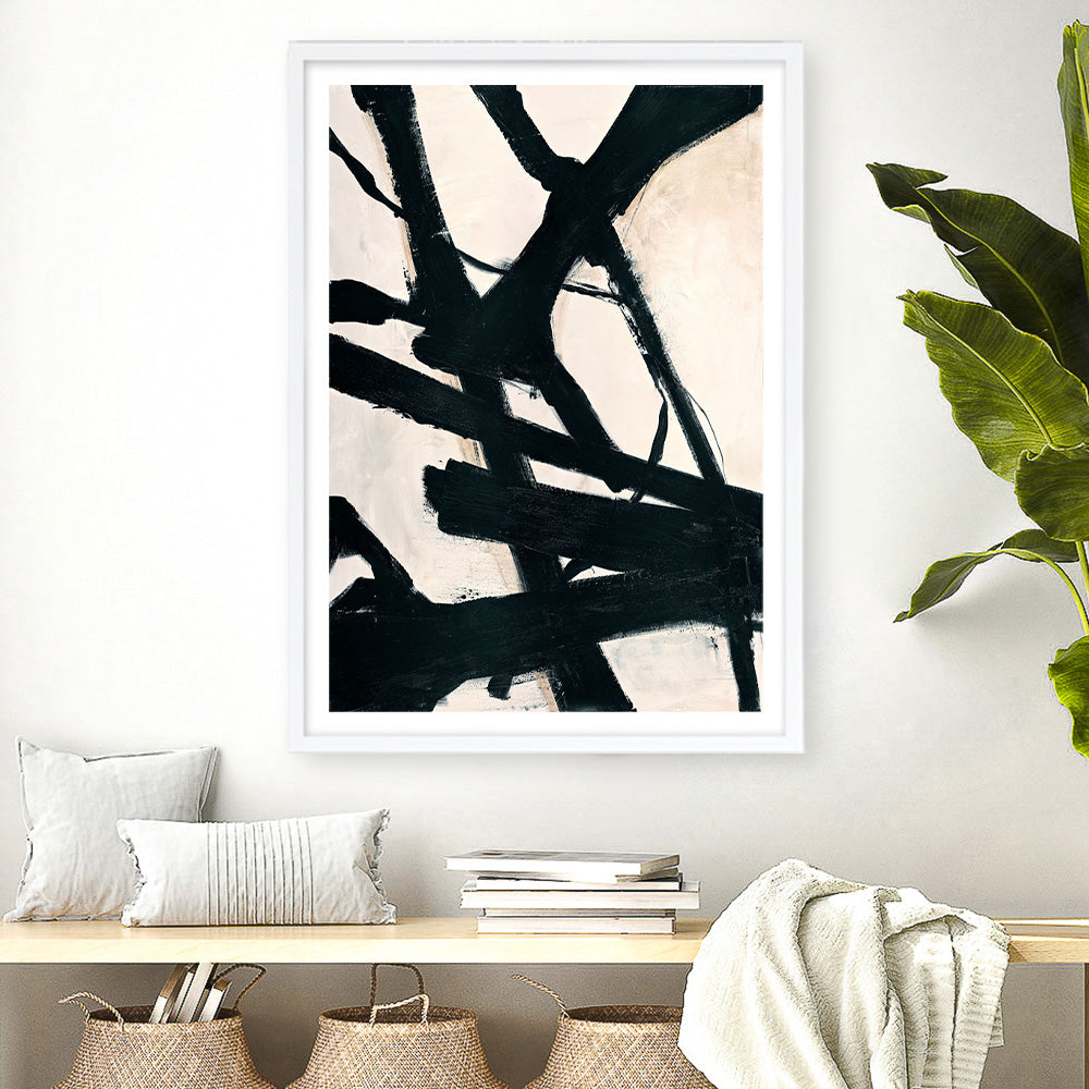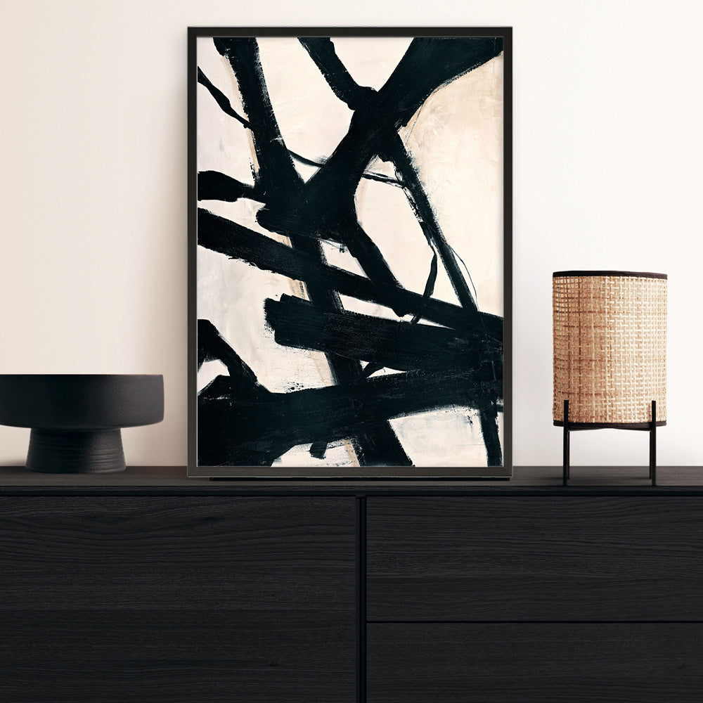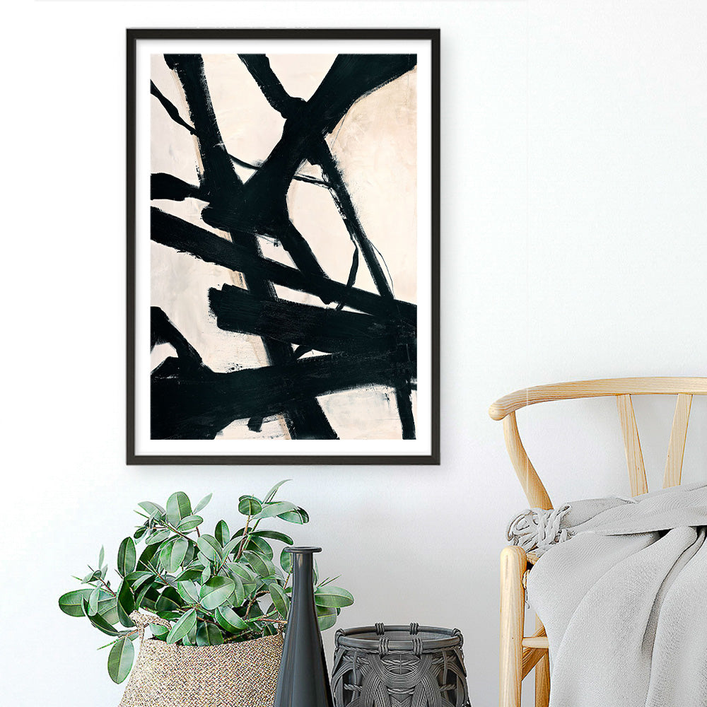 Shop Behind Black Art Print by Design Fabrikken and update your wall decor at home easily with this minimalist abstract artwork from our hand painted print collection.