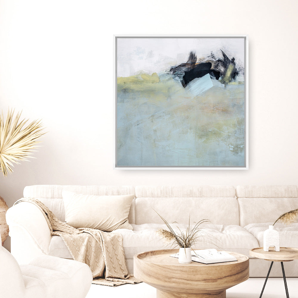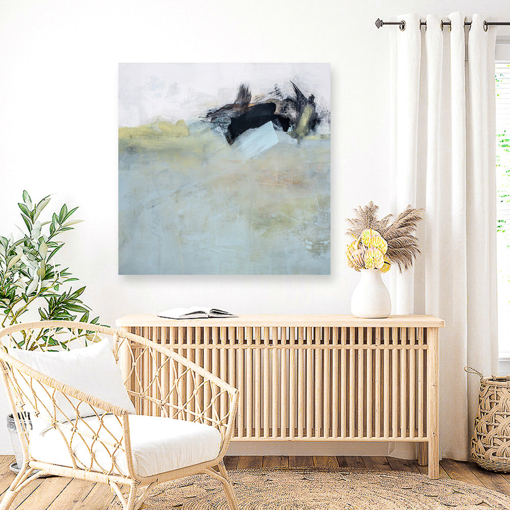Shop Between Memory and Story (Square) Canvas Print by Megan Chapman and update your wall decor at home easily with this blue and green toned square artwork from our hand painted canvas print collection.