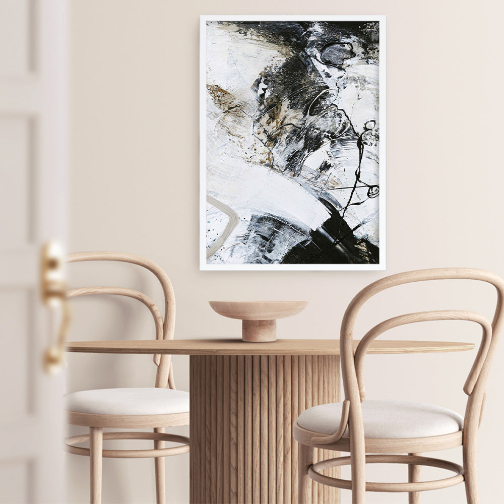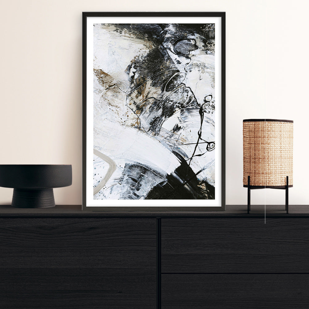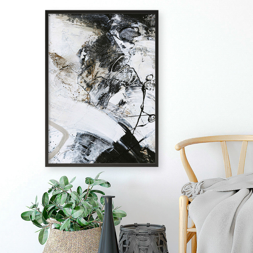 Shop Black and White 1 Art Print by Design Fabrikken and update your wall decor at home easily with this splash of black gold abstract artwork from our hand painted print collection.