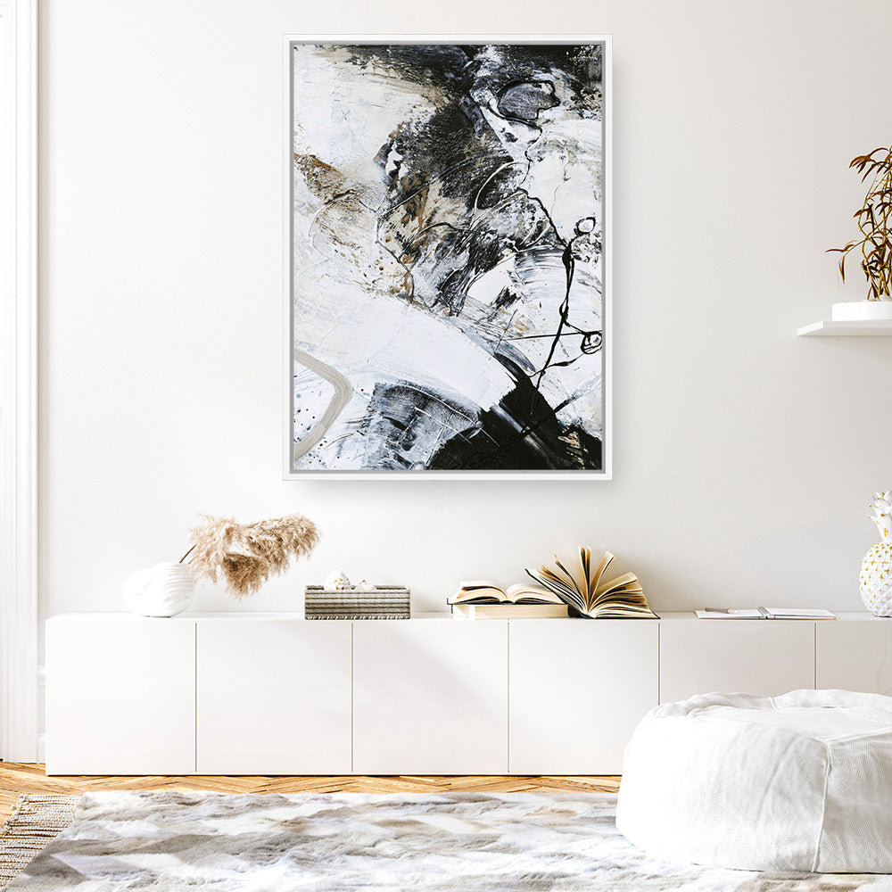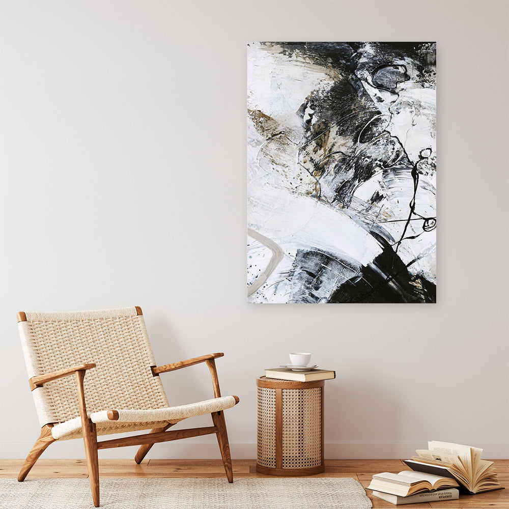 Shop Black and White 1 Canvas Print by Design Fabrikken and update your wall decor at home easily with this splash of black gold abstract artwork from our hand painted canvas print collection.