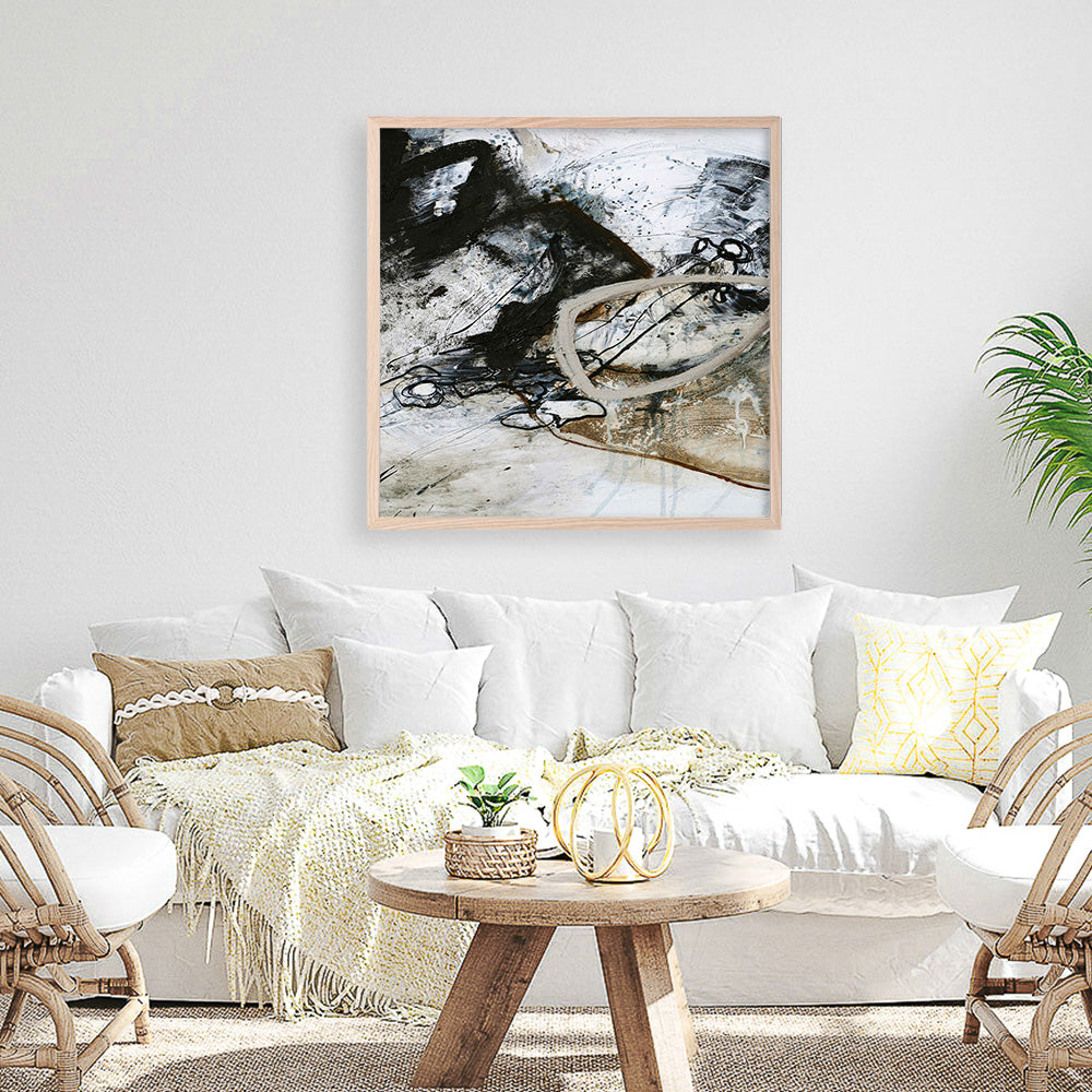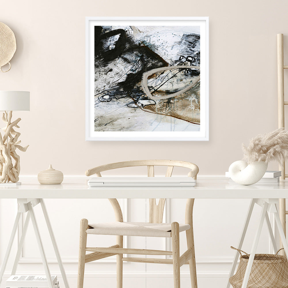 Shop Black and White 2 (Square) Art Print by Design Fabrikken and update your wall decor at home easily with this black and gold abstract square artwork from our hand painted print collection.