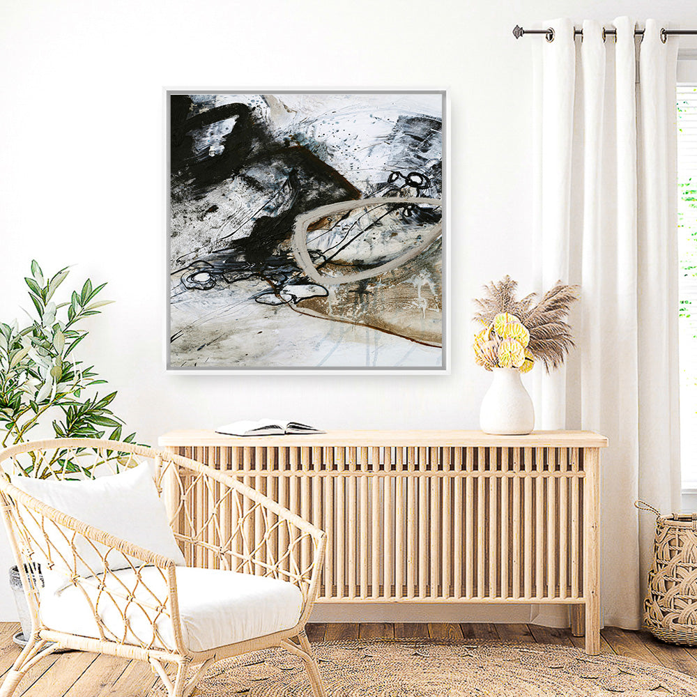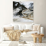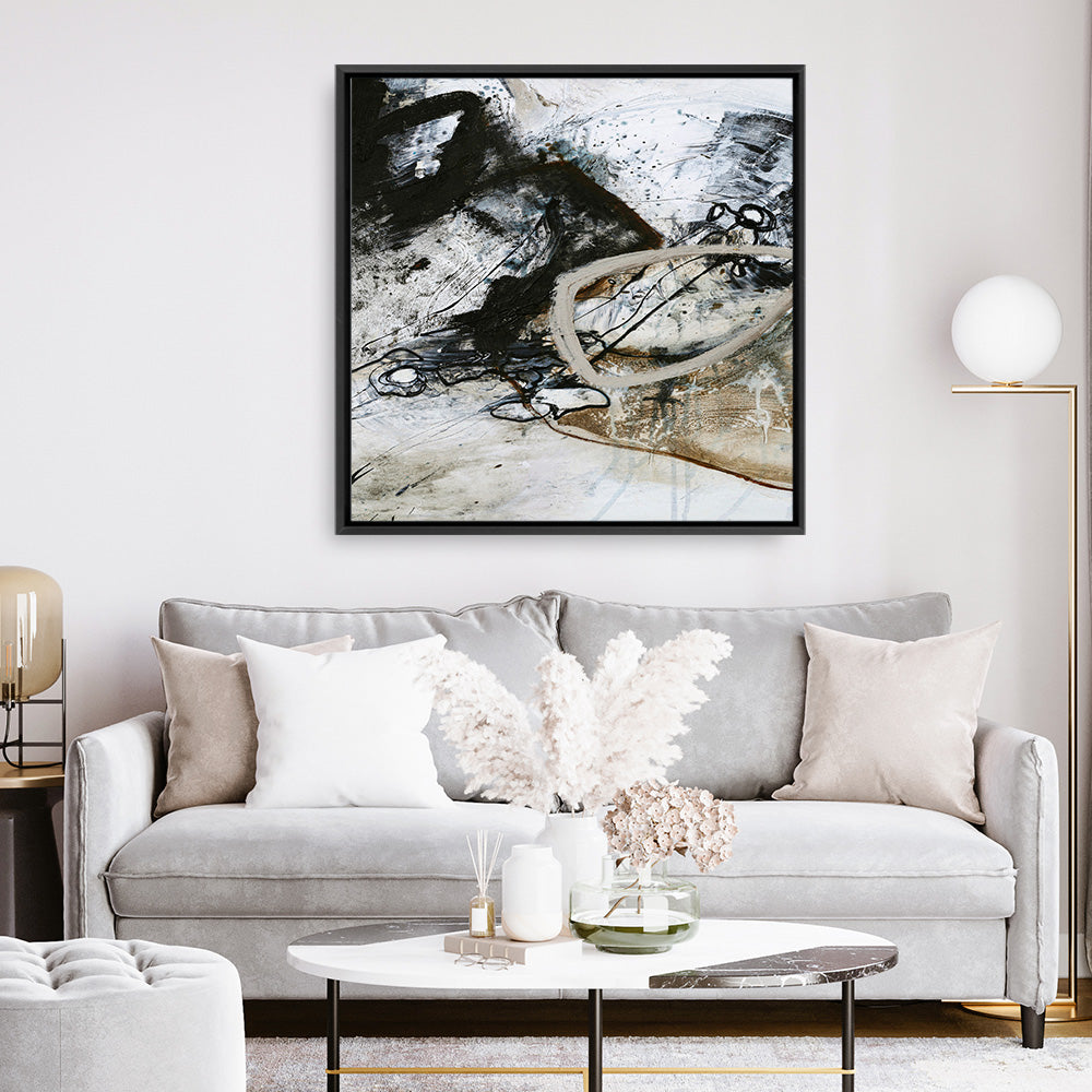 Shop Black and White 2 (Square) Canvas Print by Design Fabrikken and update your wall decor at home easily with this black and gold abstract square artwork from our hand painted canvas print collection.