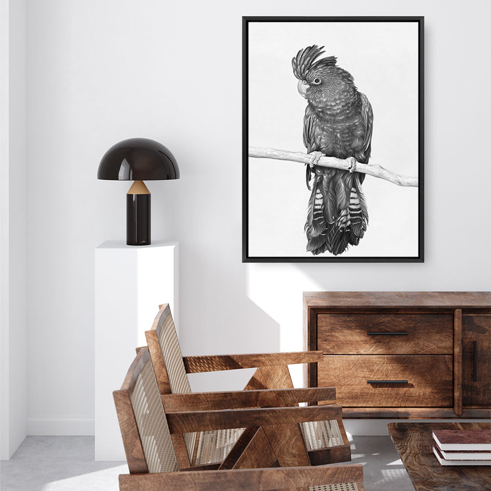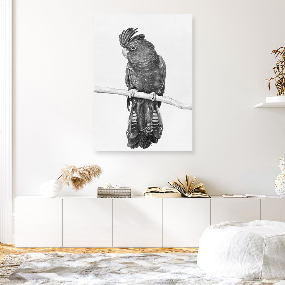 Shop Black Cockatoo Canvas Print by The Print Emporium. This canvas wall art print from our hand painted aesthetic print collection, was originally hand painted by us and is now available as a reproduction printed stretched and ready-to-hang canvas artwork.