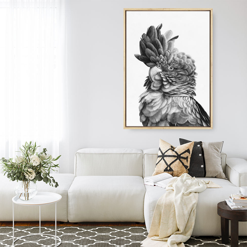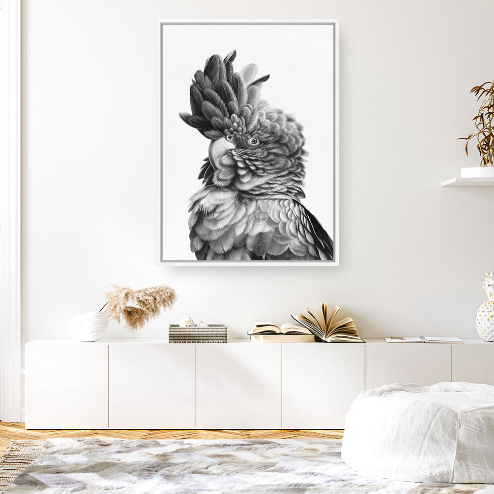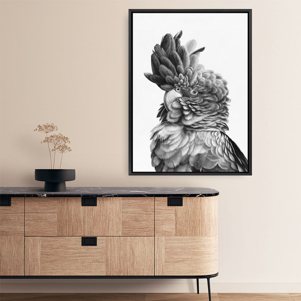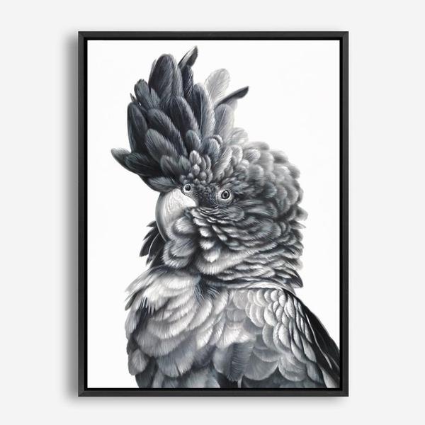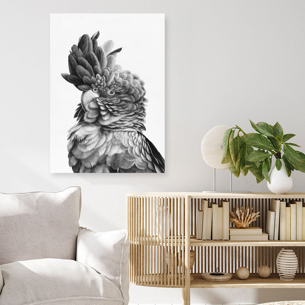 Shop Black Cockatoo Close-Up Canvas Print by The Print Emporium. This canvas wall art print from our hand painted aesthetic print collection, was originally hand painted by us and is now available as a reproduction printed stretched and ready-to-hang canvas artwork.