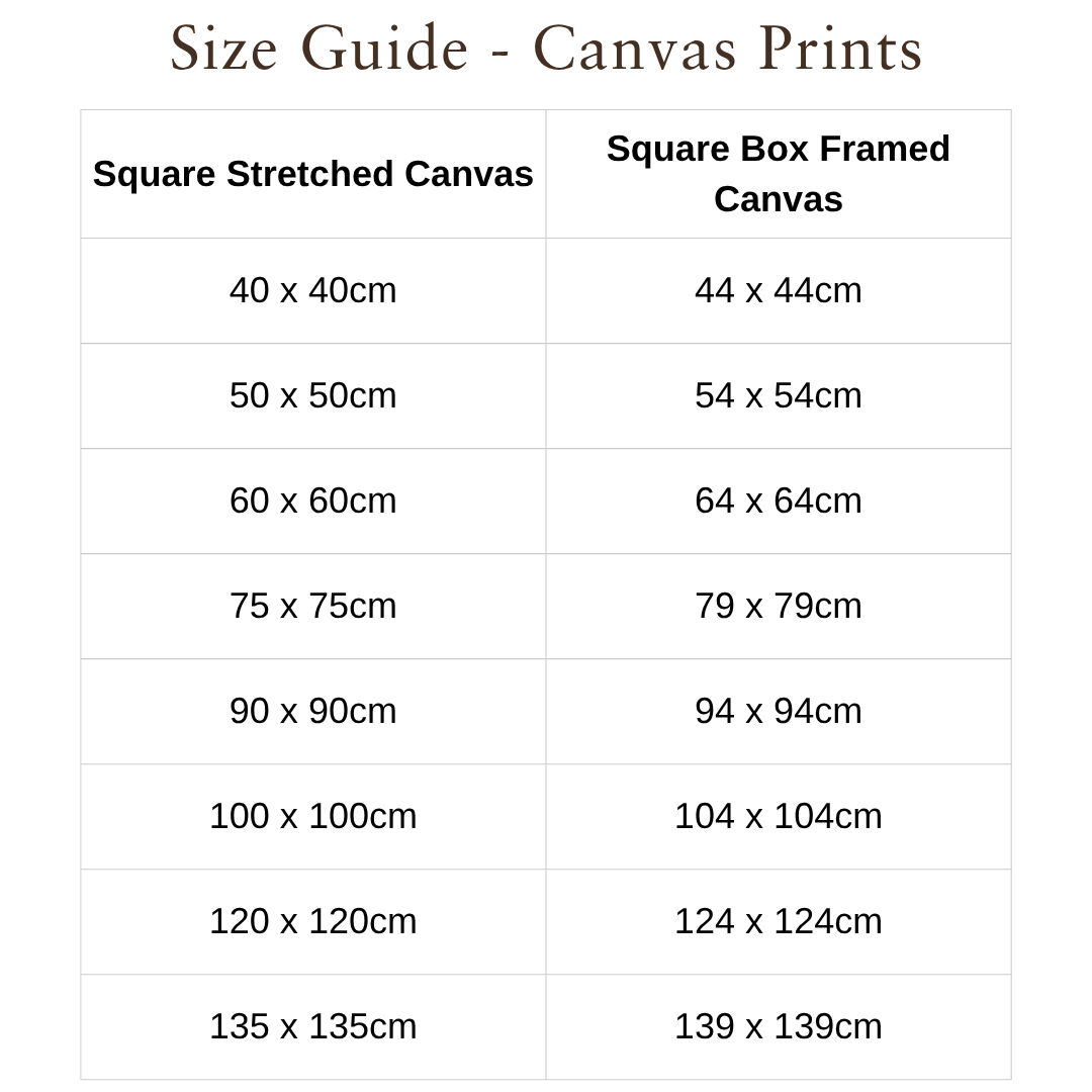 You have the choice of adding a timber shadow box floating frame. These frames are available in black, white and genuine raw oak. Please note that adding a shadow box will increase the final dimensions of your canvas print. The finished size will be approximately 4cm larger in both height and width than the listed dimensions.