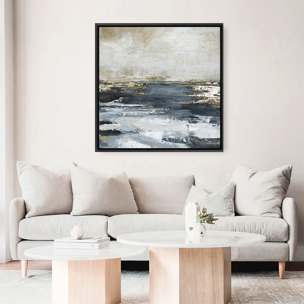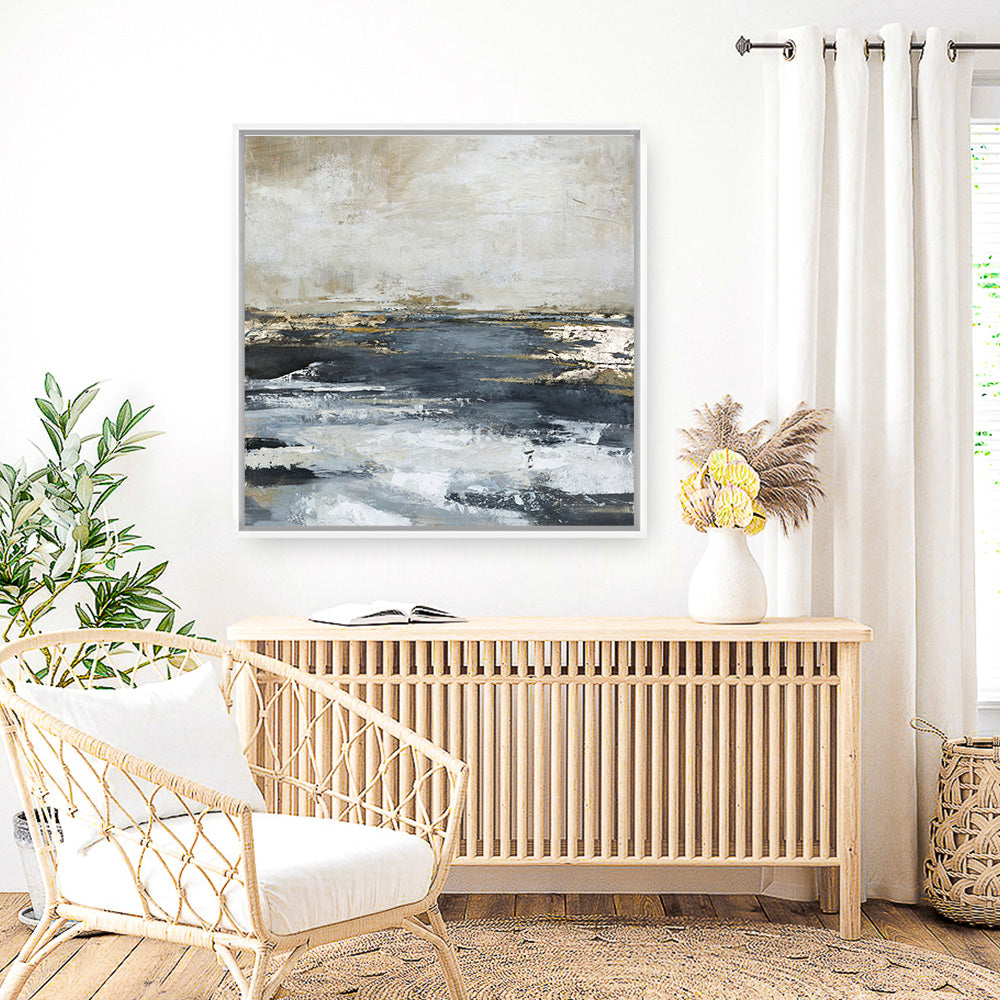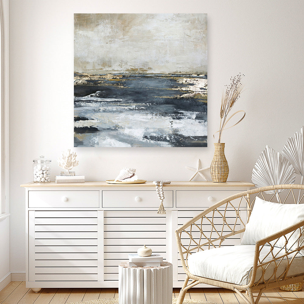Shop Blue Bay (Square) Canvas Print by Design Fabrikken and update your wall decor at home easily with this calm coastal view square artwork from our hand painted canvas print collection.