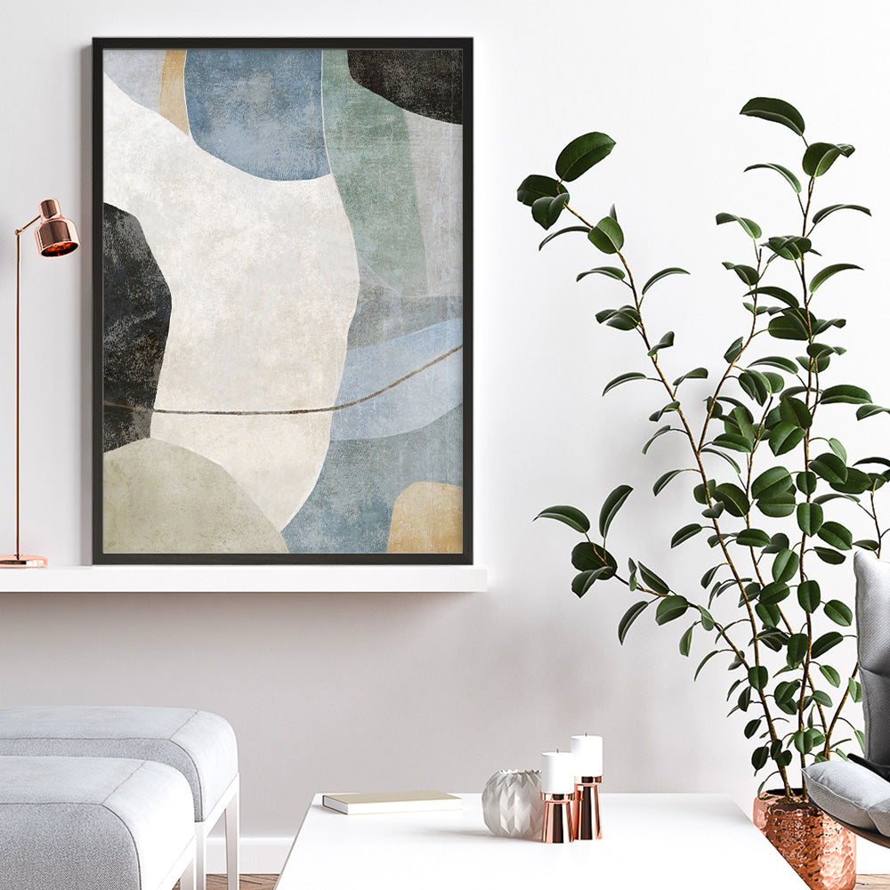 Shop Blue Canyon 1 Art Print by Suzanne Nicoll and update your wall decor at home easily with this colourful minimalist artwork from our hand painted print collection.