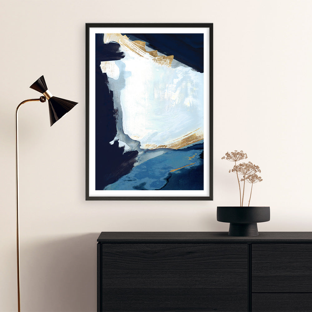 Shop Blue in Gold III Wall Art Print by cartissi and update your wall decor at home easily with this modern abstract themed artwork from our hand-painted wall art prints collection. Available framed or as a fine art unframed print.