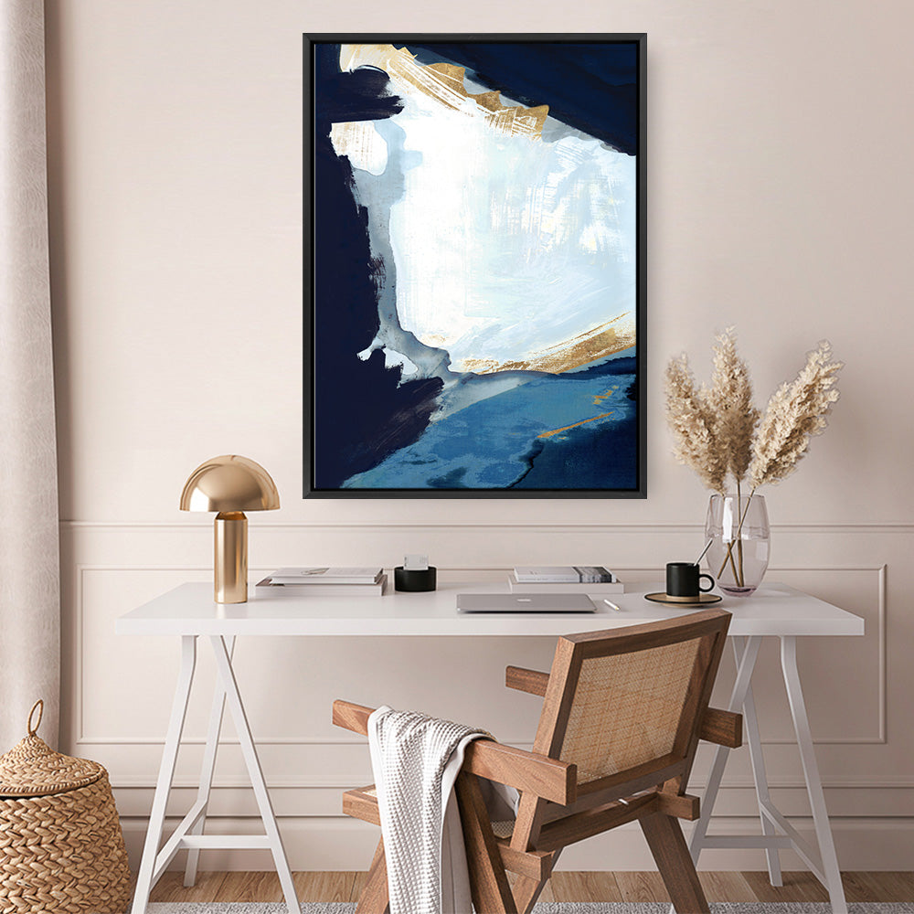 Shop Blue in Gold III Canvas Wall Art Print by cartissi and update your wall decor at home easily with this modern abstract themed framed artwork from our hand painted canvas print collection.
