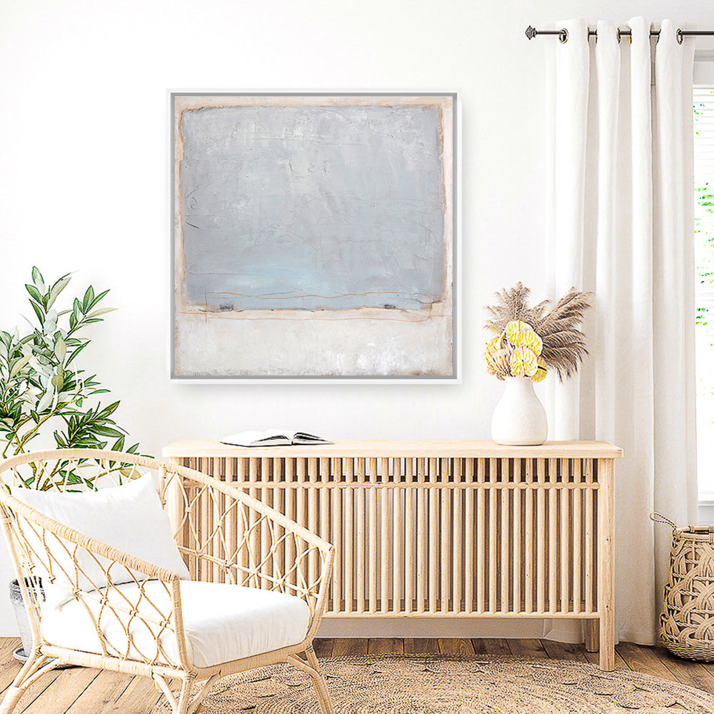 Shop Blue Inside (Square) Canvas Print by Design Fabrikken and update your wall decor at home easily with this light blue, neutral square artwork from our hand painted canvas print collection.