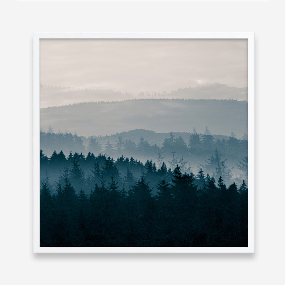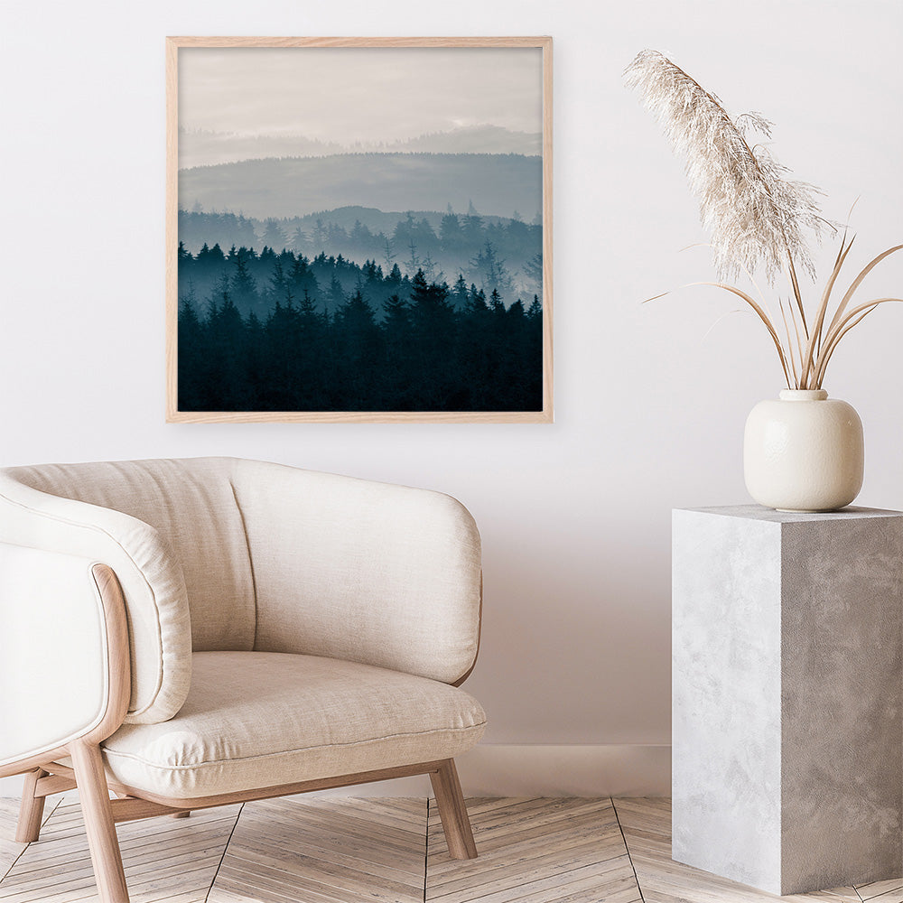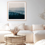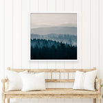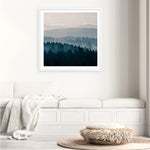 Shop Blue Mountains I! (Square) Art Print by PhotoINC Studio and update your wall decor at home easily with this gloomy mountain silhouette square artwork from our hand painted print collection.