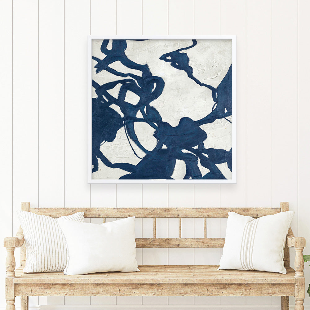 Shop Blueplay (Square) Art Print by Design Fabrikken and update your wall decor at home easily with this blue abstract square artwork from our hand painted print collection.