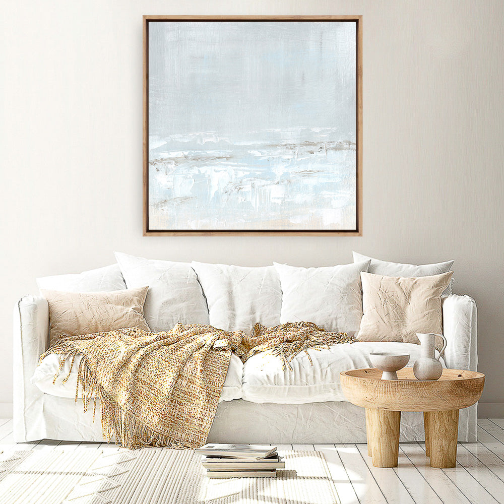 Shop Boundless (Square) Canvas Print by NLS Design and update your wall decor at home easily with this calm ocean horizon square artwork from our hand painted canvas print collection.