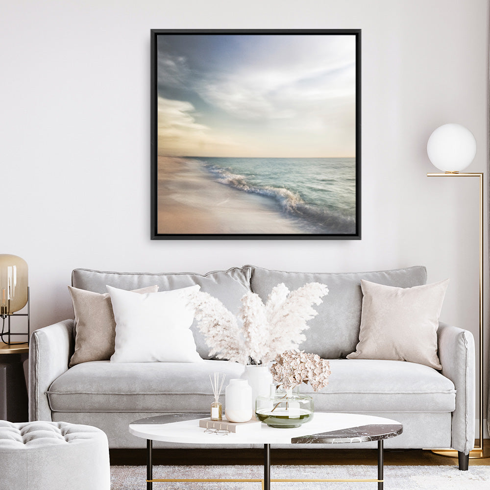 Shop Breathe In (Square) Canvas Print by Karin Connolly and update your wall decor at home easily with this tranquil seascape square artwork from our hand painted canvas print collection.