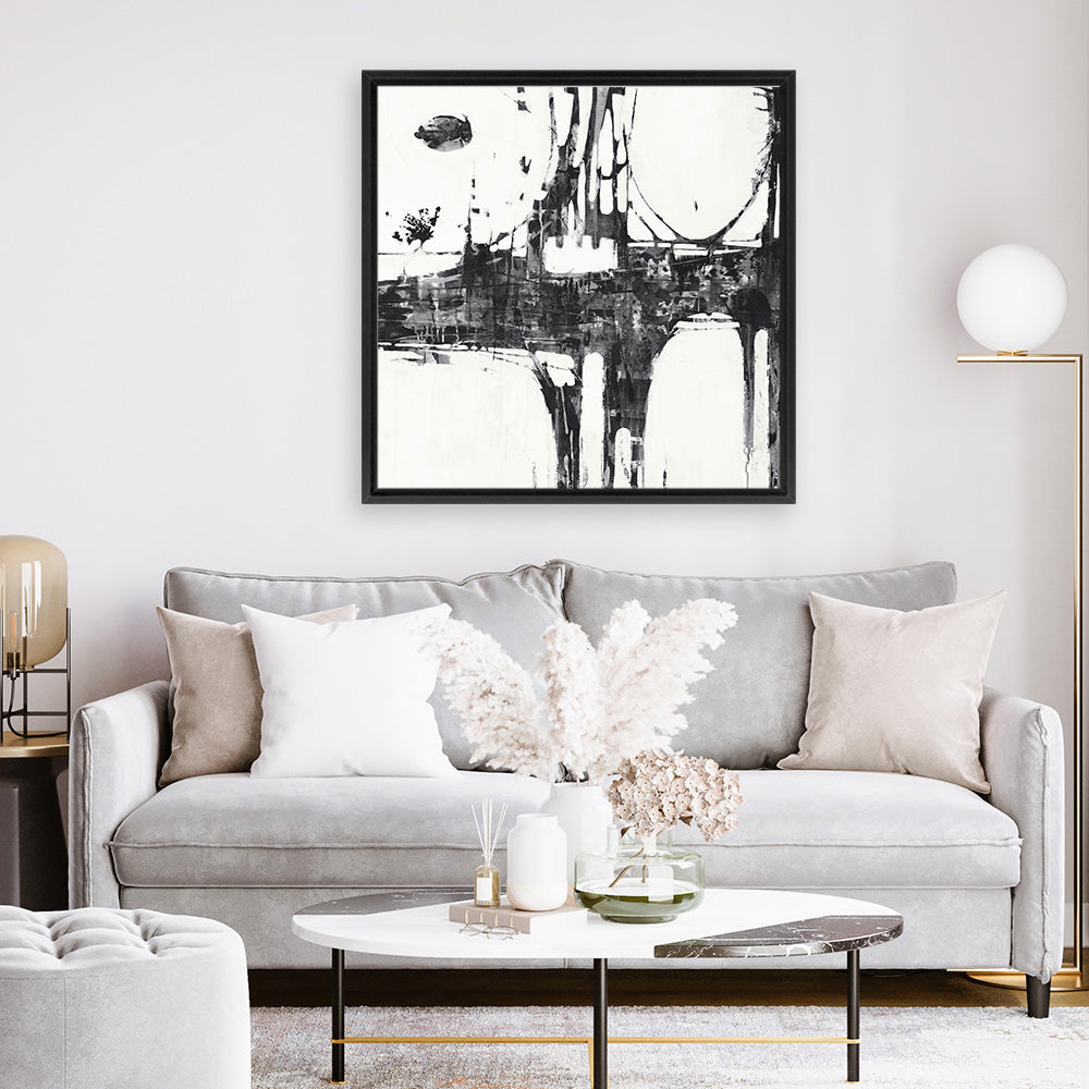 Shop Building Bridges II (Square) Canvas Print by Liz Jardine and update your wall decor at home easily with this black and white toned abstract themed from our hand painted canvas print collection.