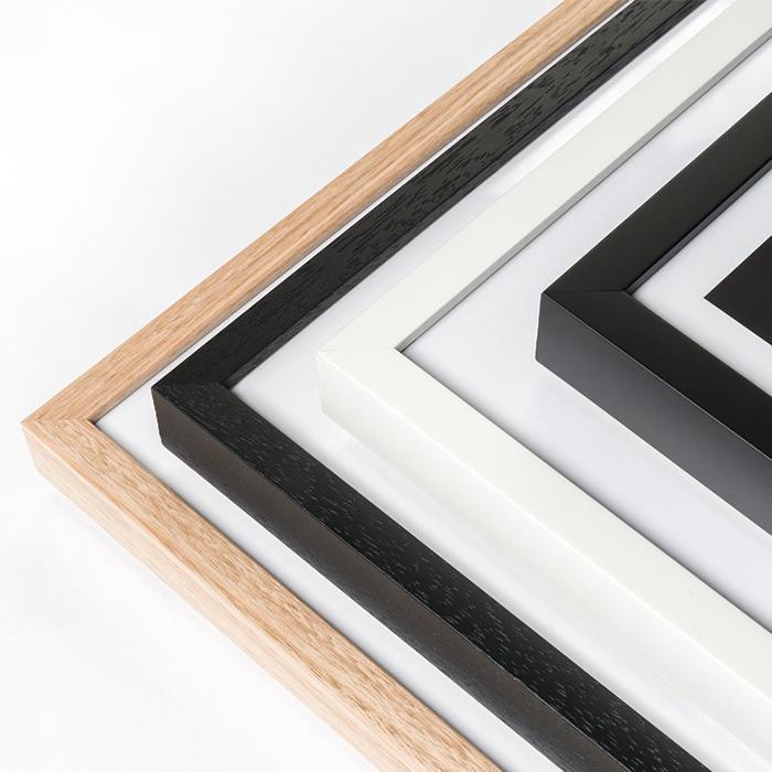 We provide high-quality, Australian-made frames for our paper print collection. The frames are crafted from sustainably sourced timber and come in four beautiful finishes: natural raw oak, white wood, black smooth and black grain wood.