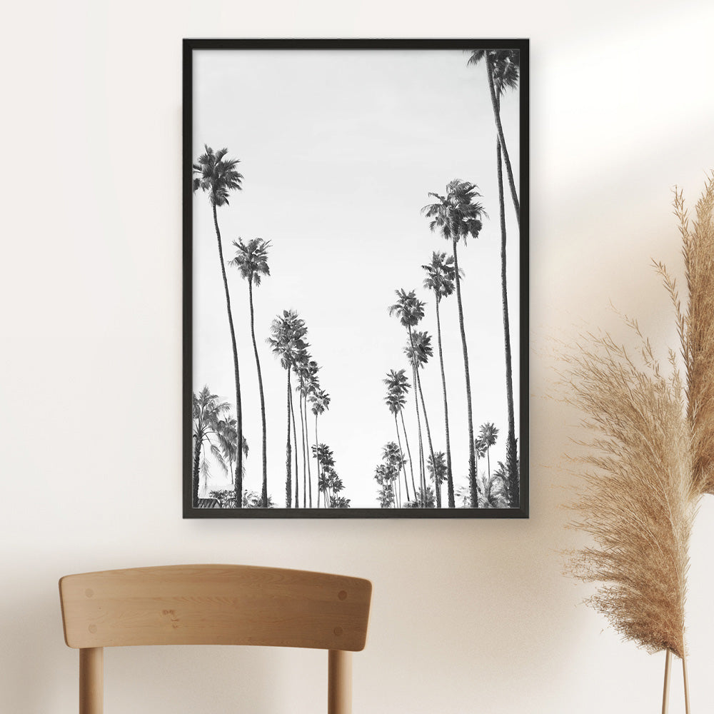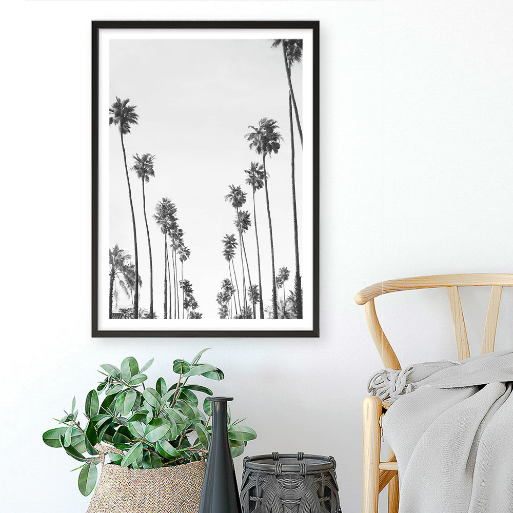 Shop California Palms B&W Art Print by The Print Emporium and update your wall decor at home easily with this artwork print from our hand painted print collection.