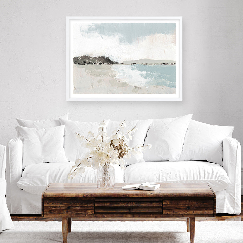 Shop Calm Water Neutral Wall Art Print by Pamela Munger and update your wall decor at home easily with this coastal beach landscape themed wall artwork print from our hand painted prints collection.