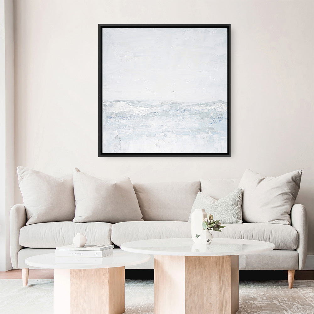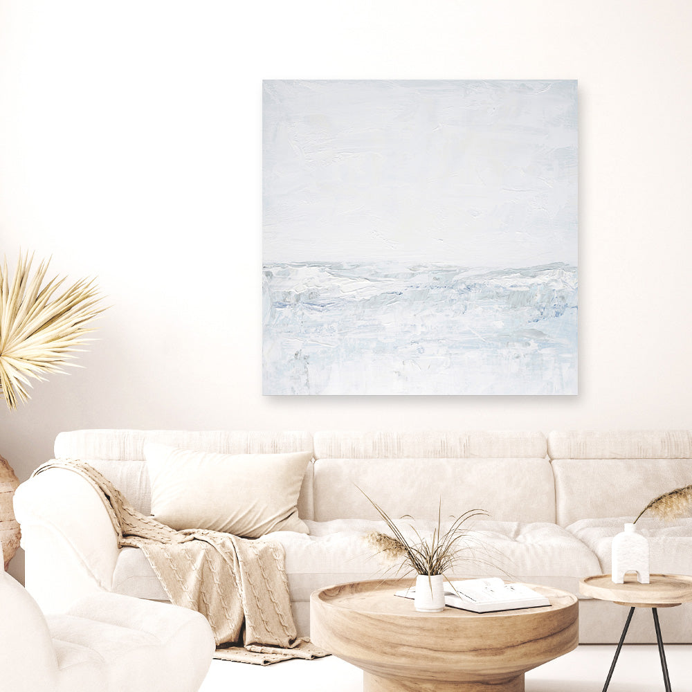 Shop Calming (Square) Canvas Print by NLS Design and update your wall decor at home easily with this calming beach view square artwork from our hand painted canvas print collection.