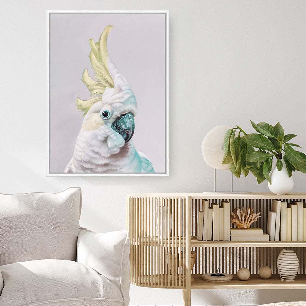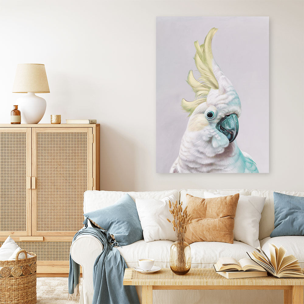 Shop Charlie The Cockatoo (Ice) Canvas Print by The Print Emporium. This canvas wall art print from our hand painted aesthetic print collection, was originally hand painted by us and is now available as a reproduction printed stretched and ready-to-hang canvas artwork.