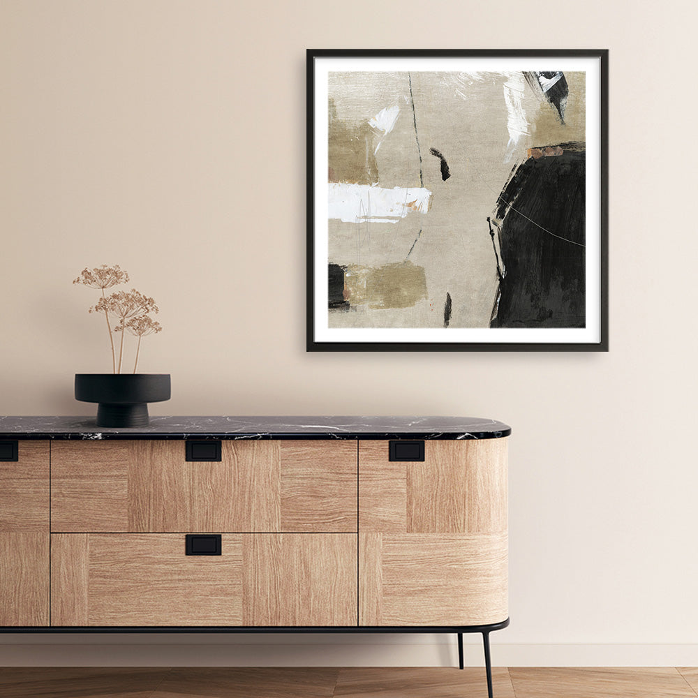 Shop City Sidewalk 1 (Square) Art Print by Suzanne Nicoll and update your wall decor at home easily with this neutral abstract square artwork from our hand painted print collection.
